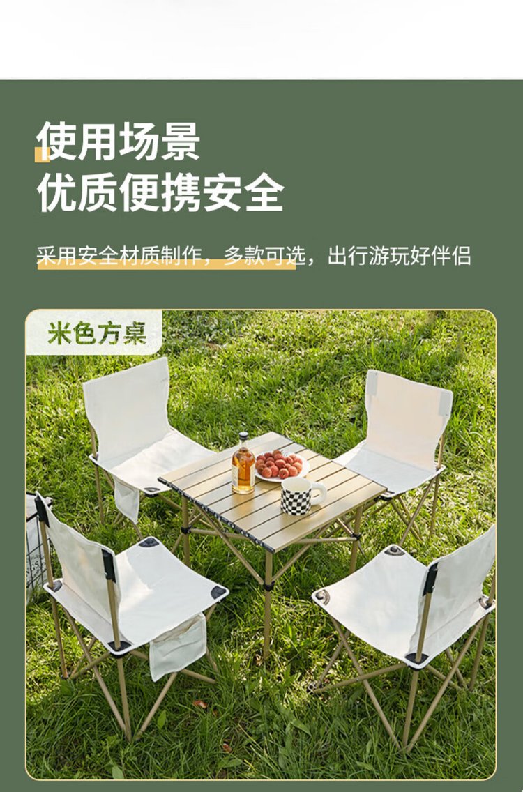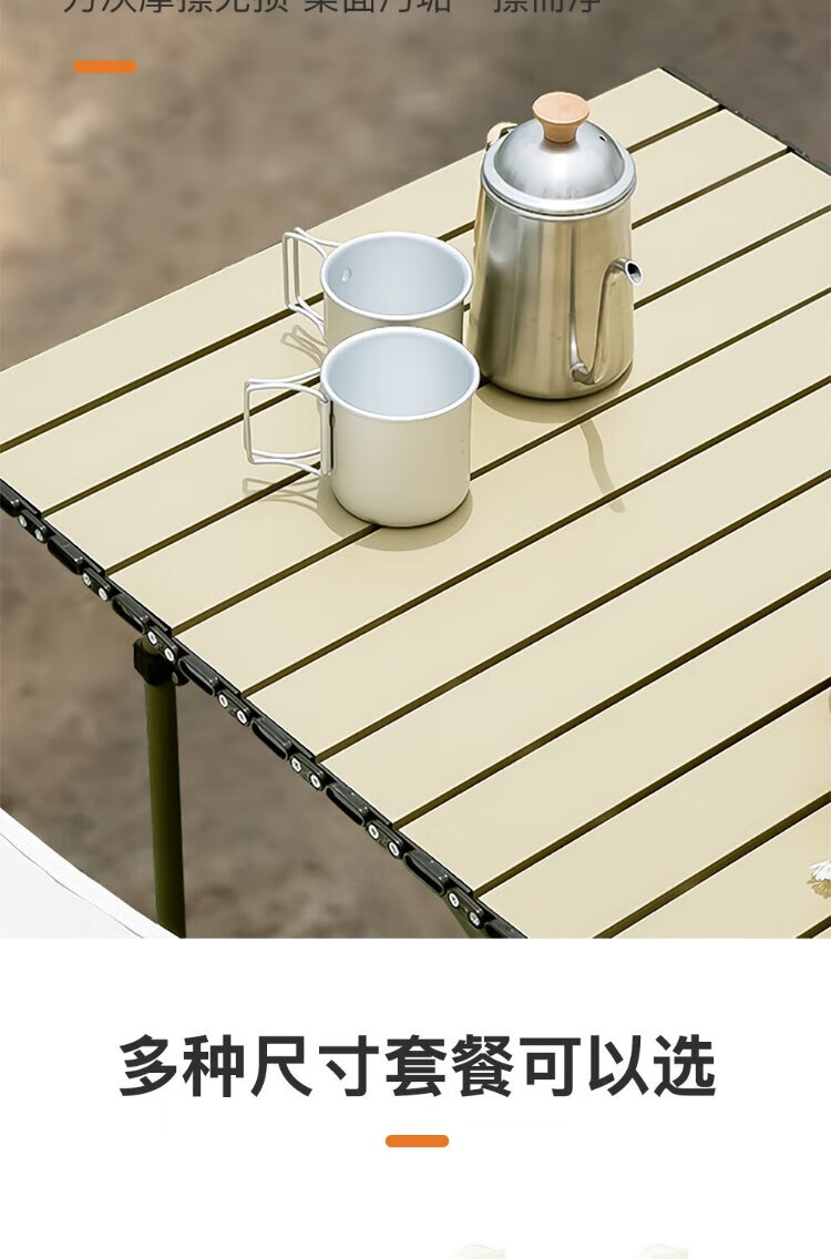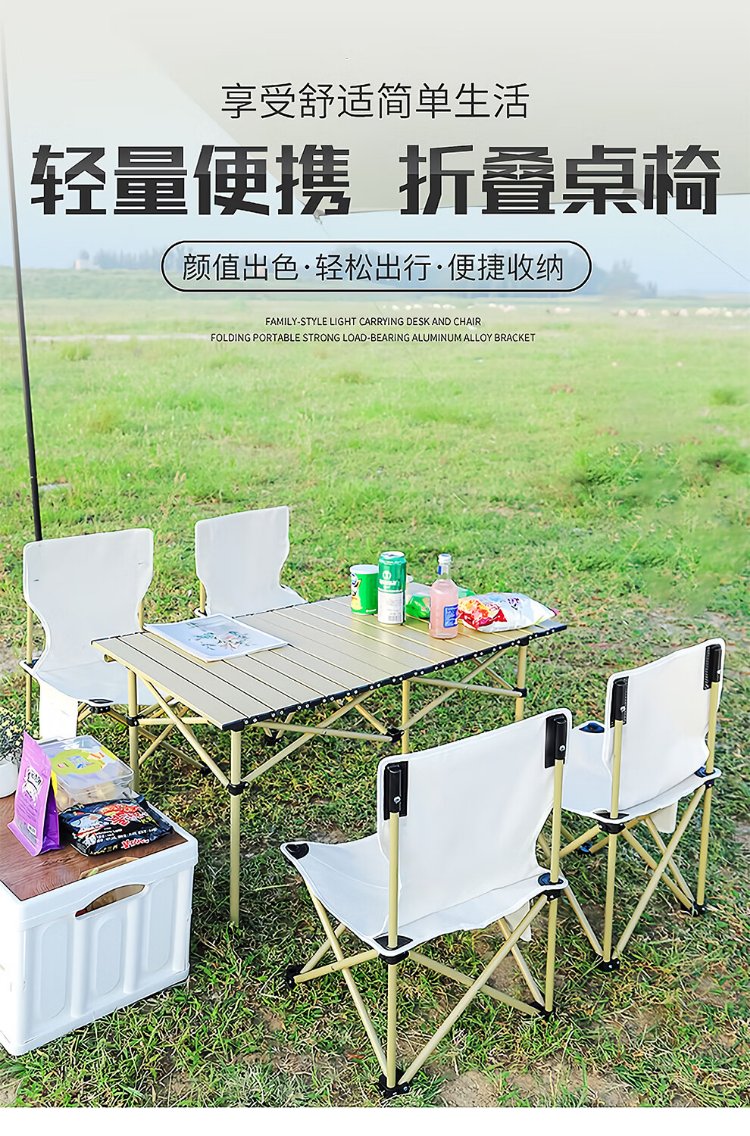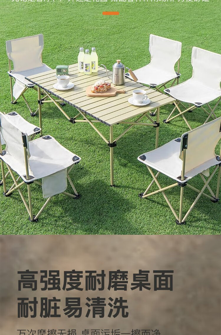 Jiuqiangu outdoor foldable table and chairs portable picnic table camping egg roll table carbon steel camping table khaki gold 4581