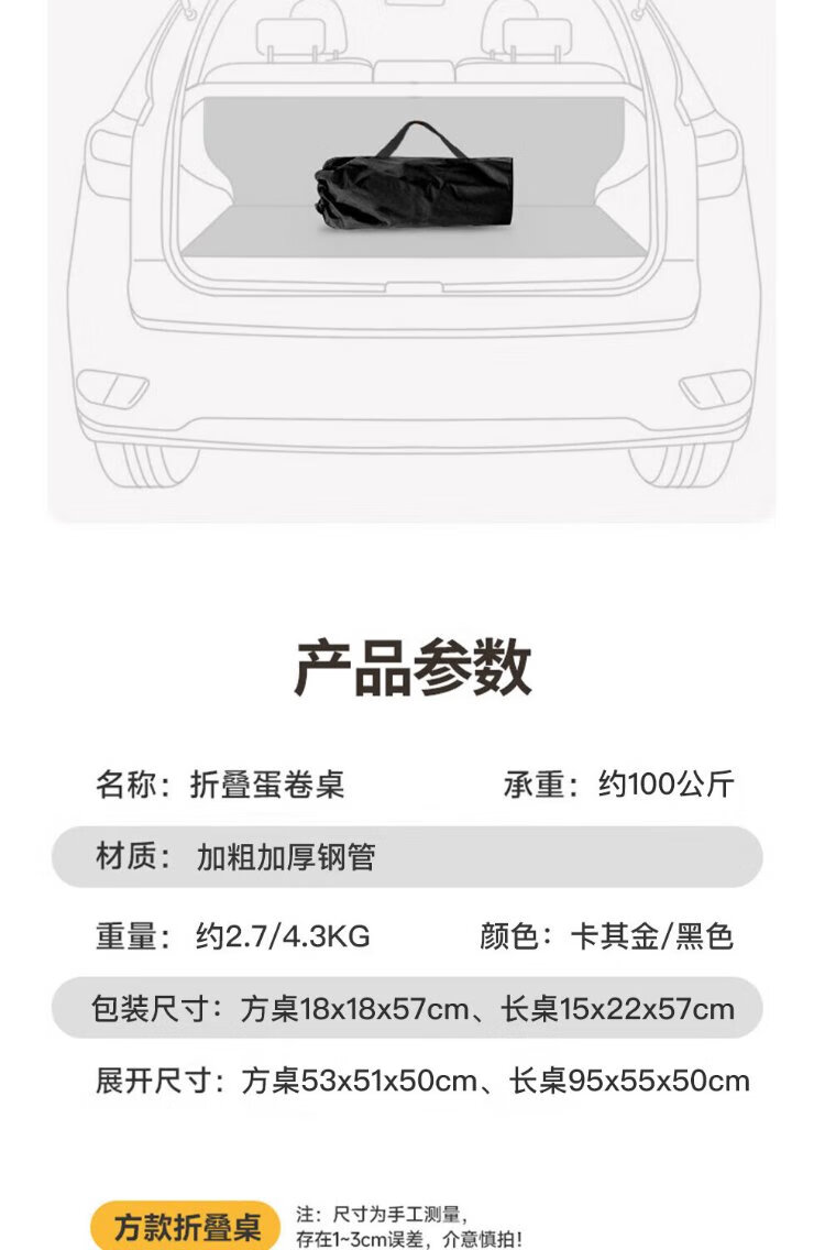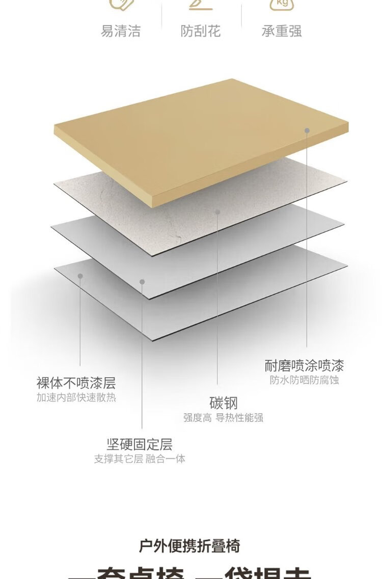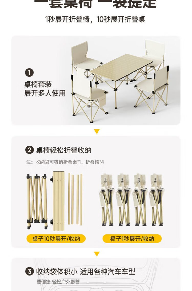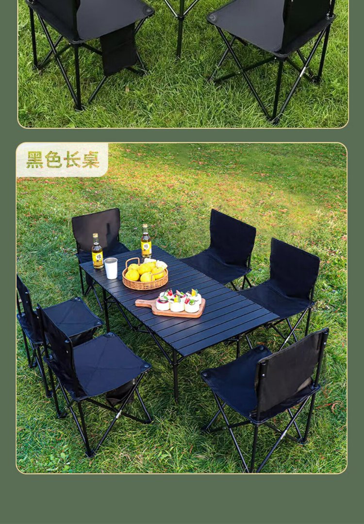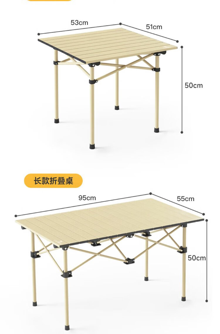 Jiuqiangu outdoor foldable table and chairs portable picnic table camping egg roll table carbon steel camping table khaki gold 4581