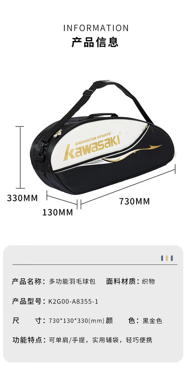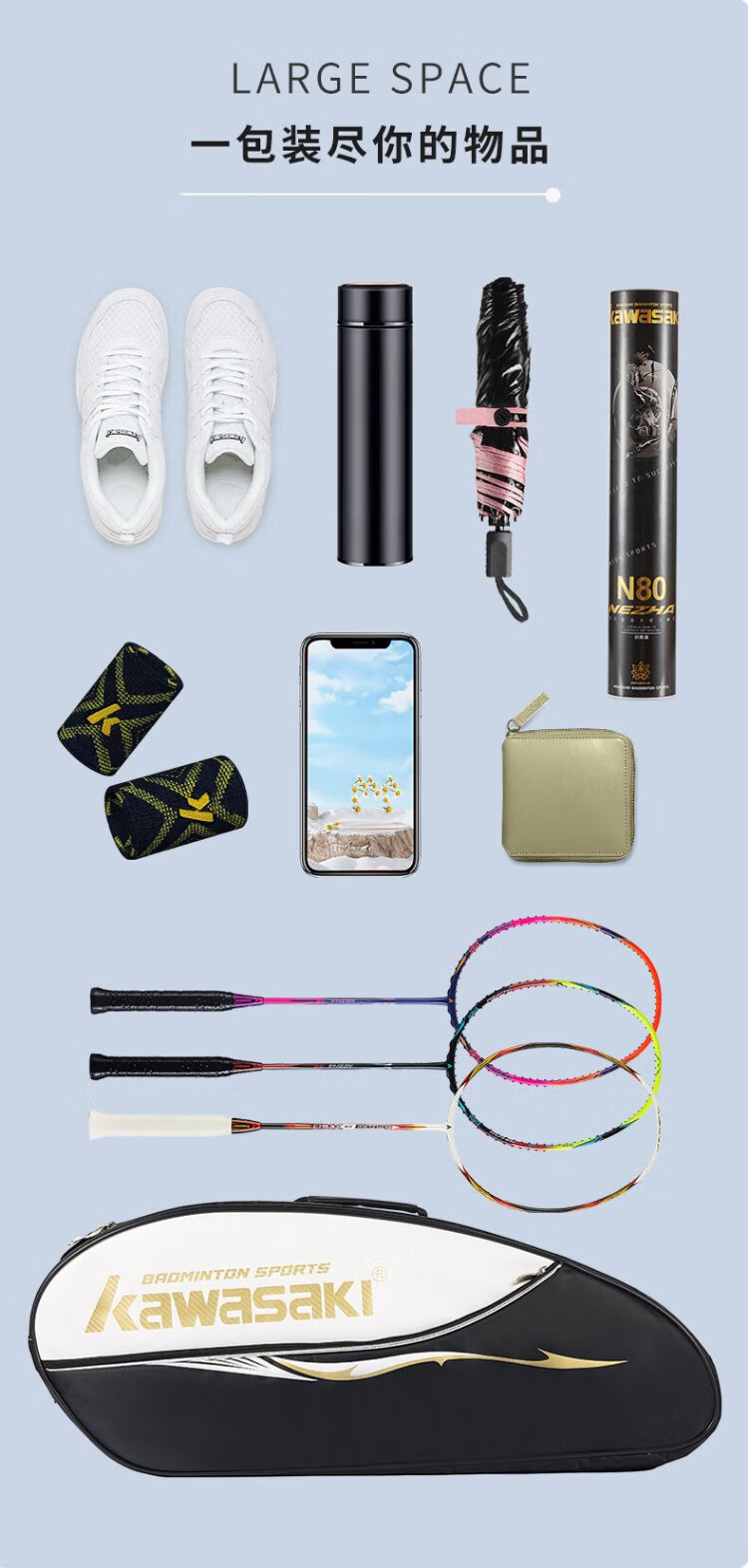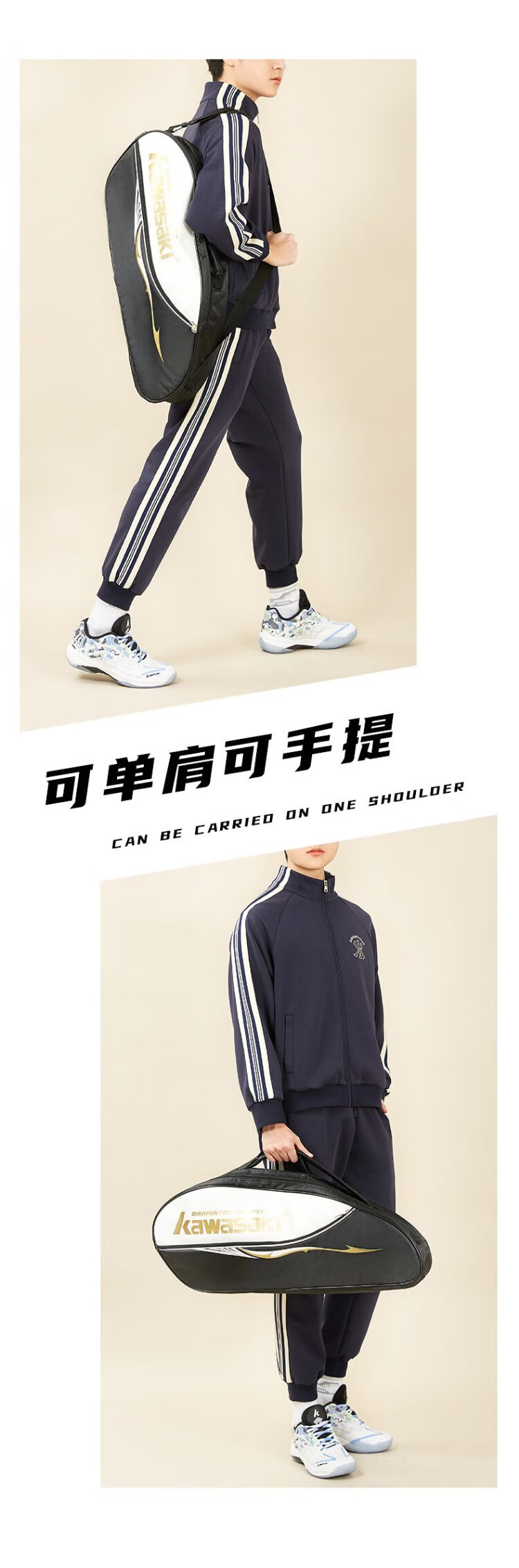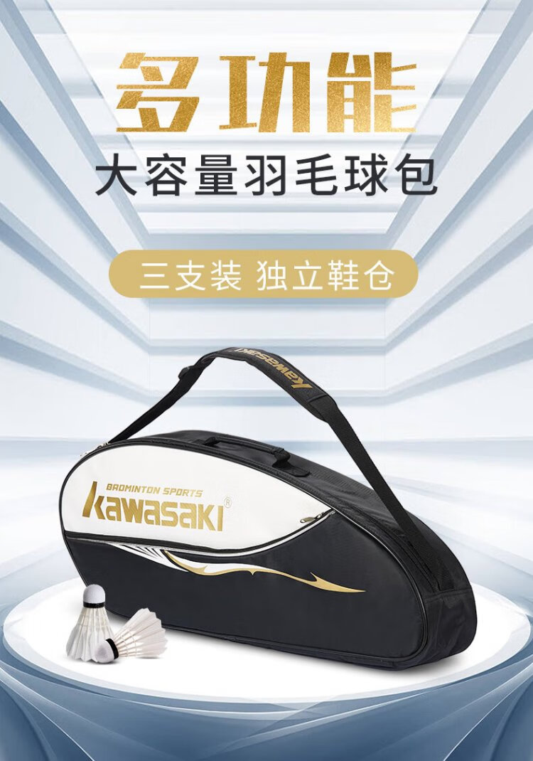 Kawasaki (KAWASAKI) badminton bag large capacity portable shoulder bag racket bag bag 3 pack A8355 black gold