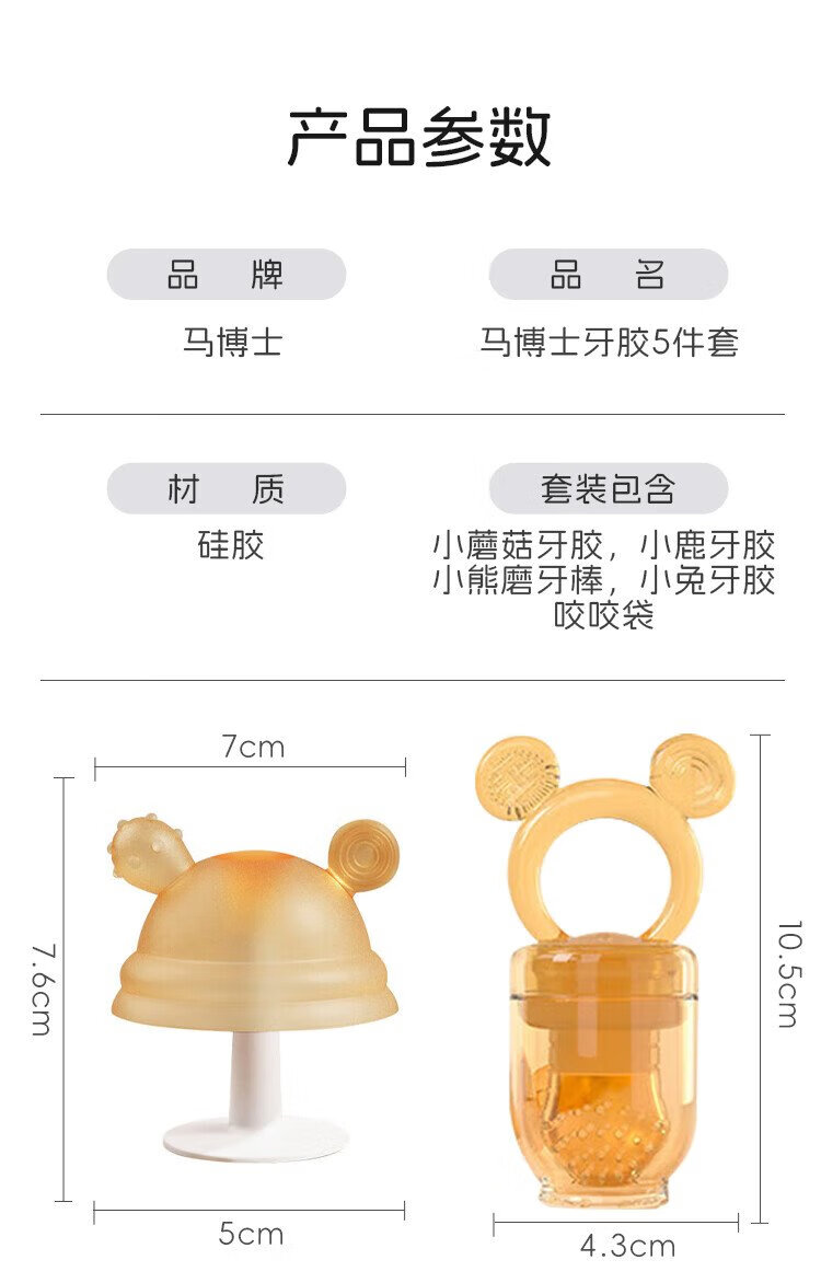 Dr. Ma baby teether, molar stick, small mushroom teether, newborn child bite gum, fruit bite bag, 5 pieces
