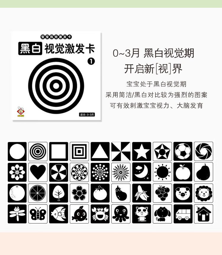 Dipur black and white card newborn 0-3 months old black and white card black and white pursuit card baby early education visual stimulation card large size