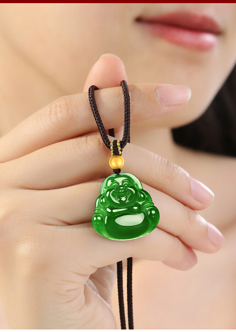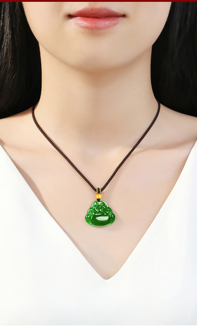Phoenix Jewelry Hetian Jade Maitreya Buddha Pendant Black Jasper Buddha Natural Jade Women's Necklace Birthday Gift