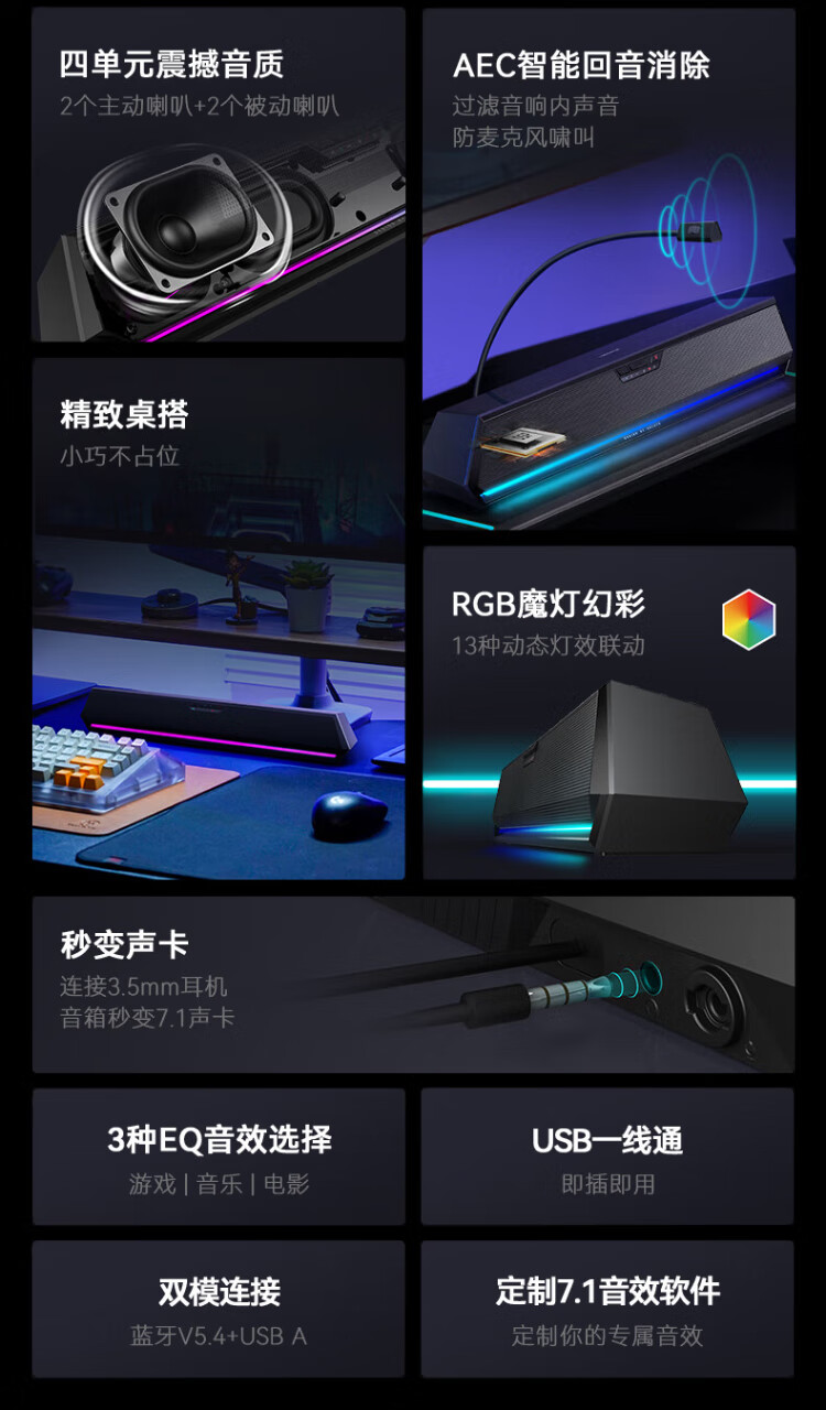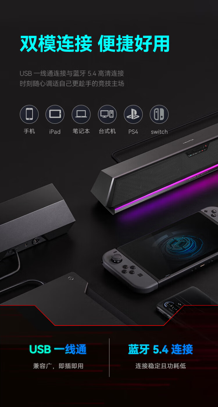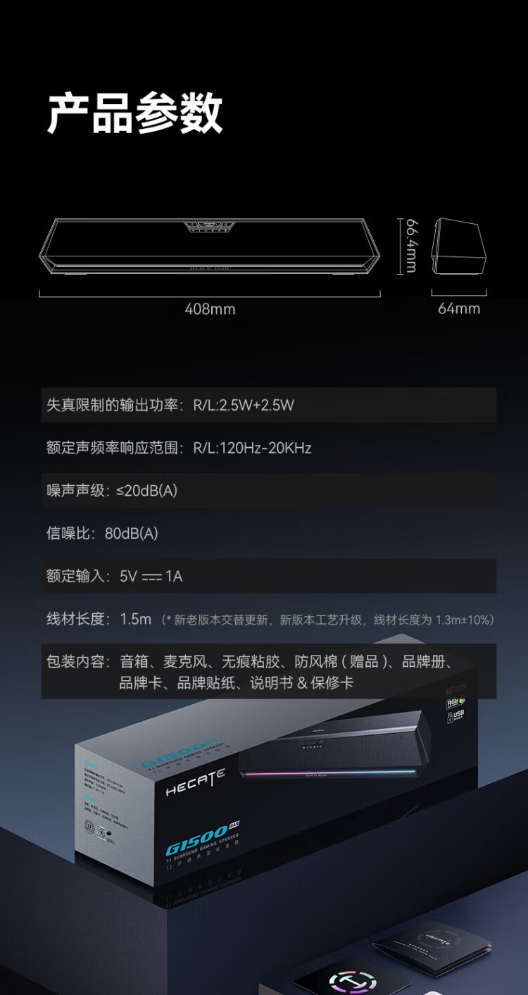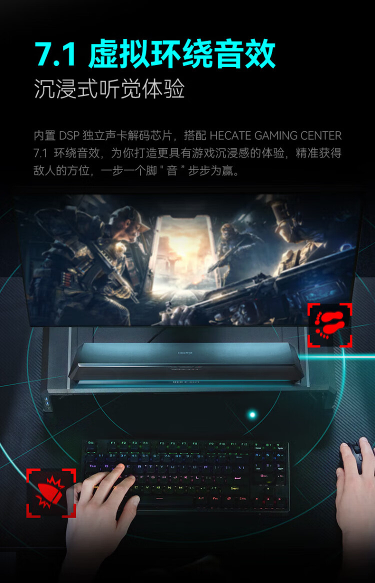 Edifier (EDIFIER) HECATE G1500 Bar 7.1 sound effect e-sports desktop long strip game speaker anti-howling Bluetooth 5.4 home desktop computer notebook audio black