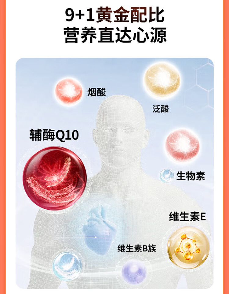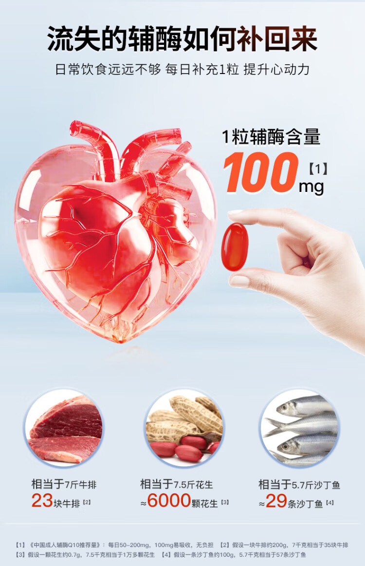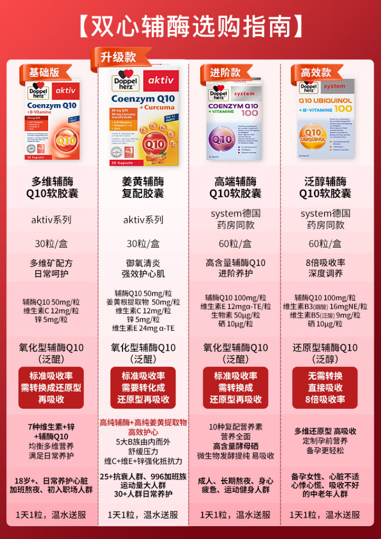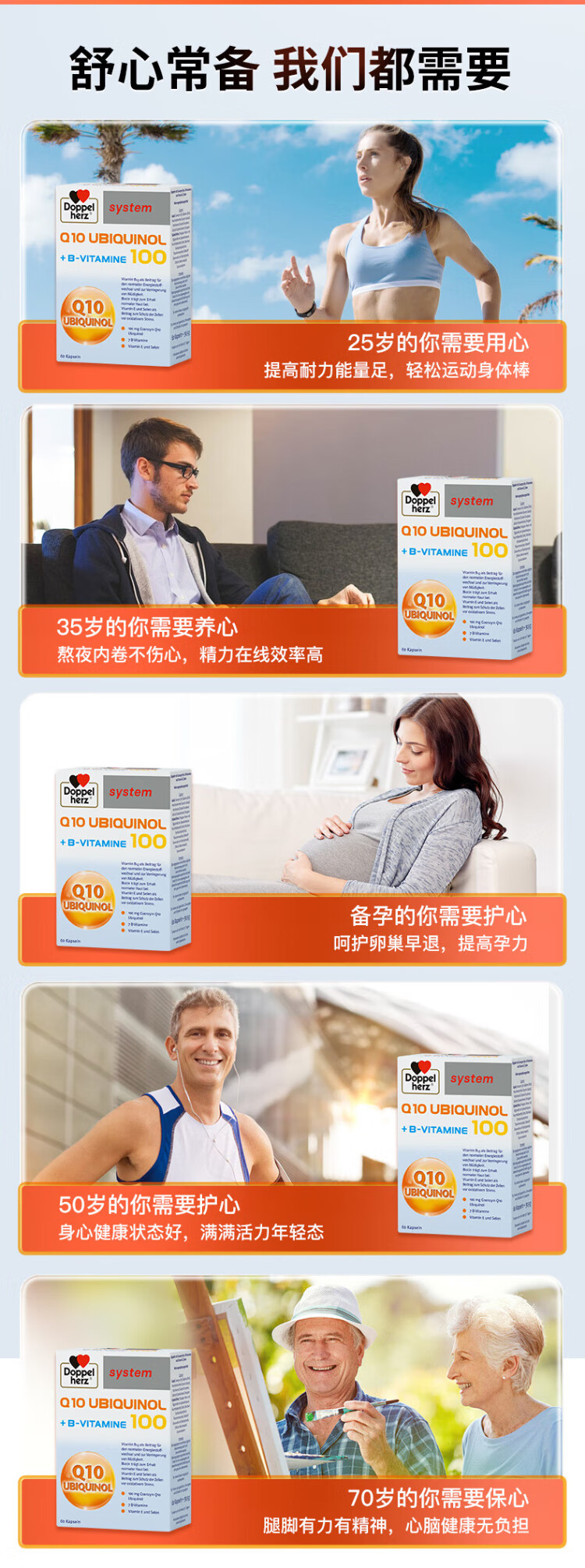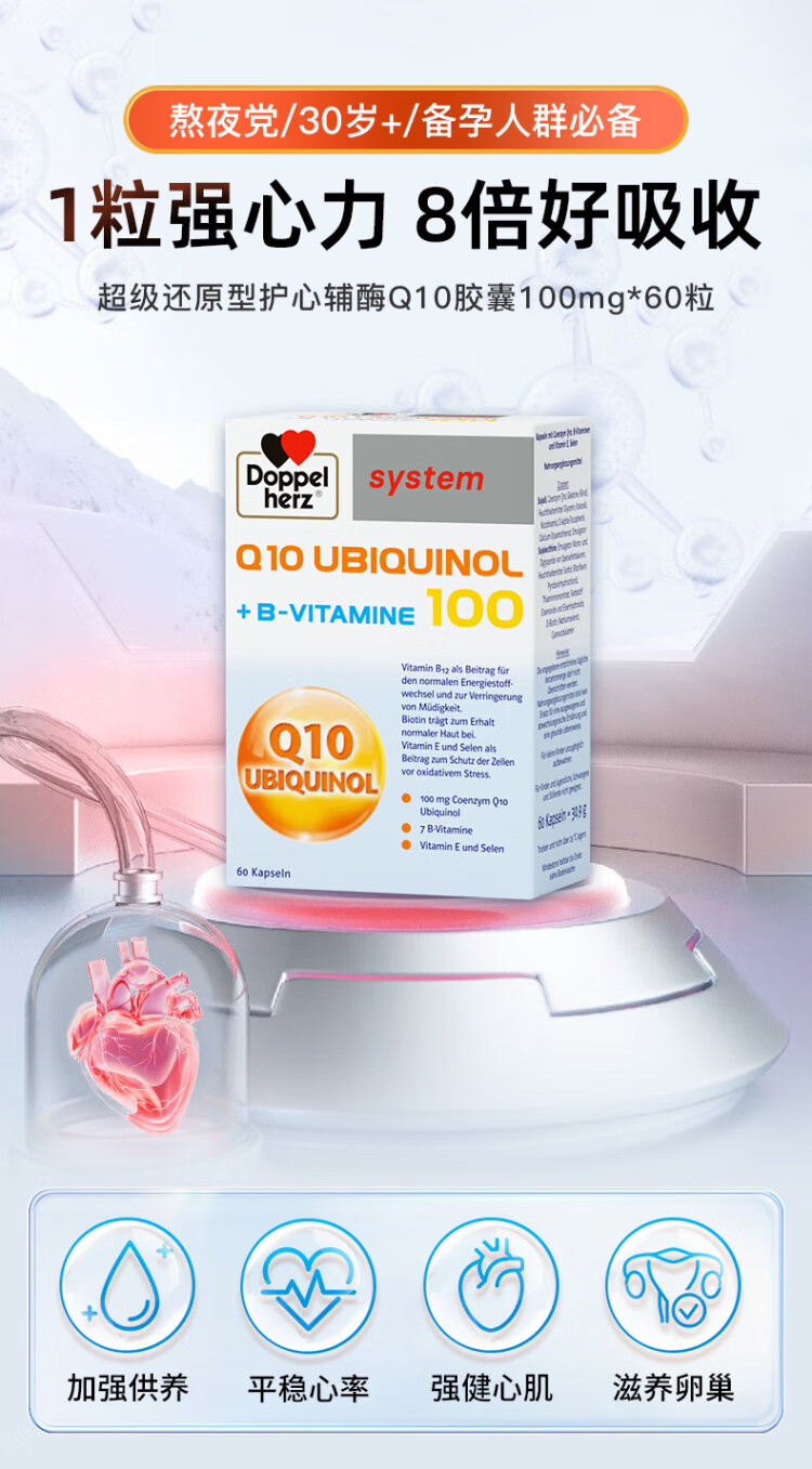 Doppel herz reduced coenzyme Q10 capsules high content for pregnancy preparation, staying up late and working overtime to protect the heart vitamin bVE 100mg*60