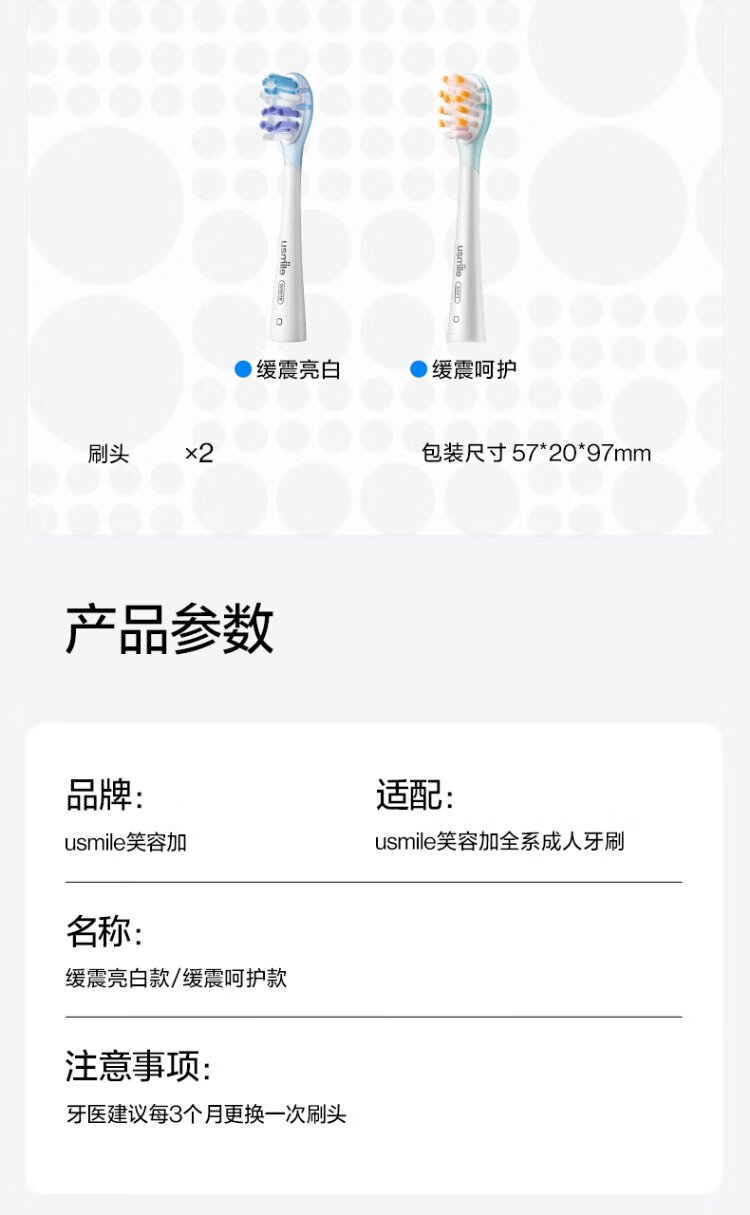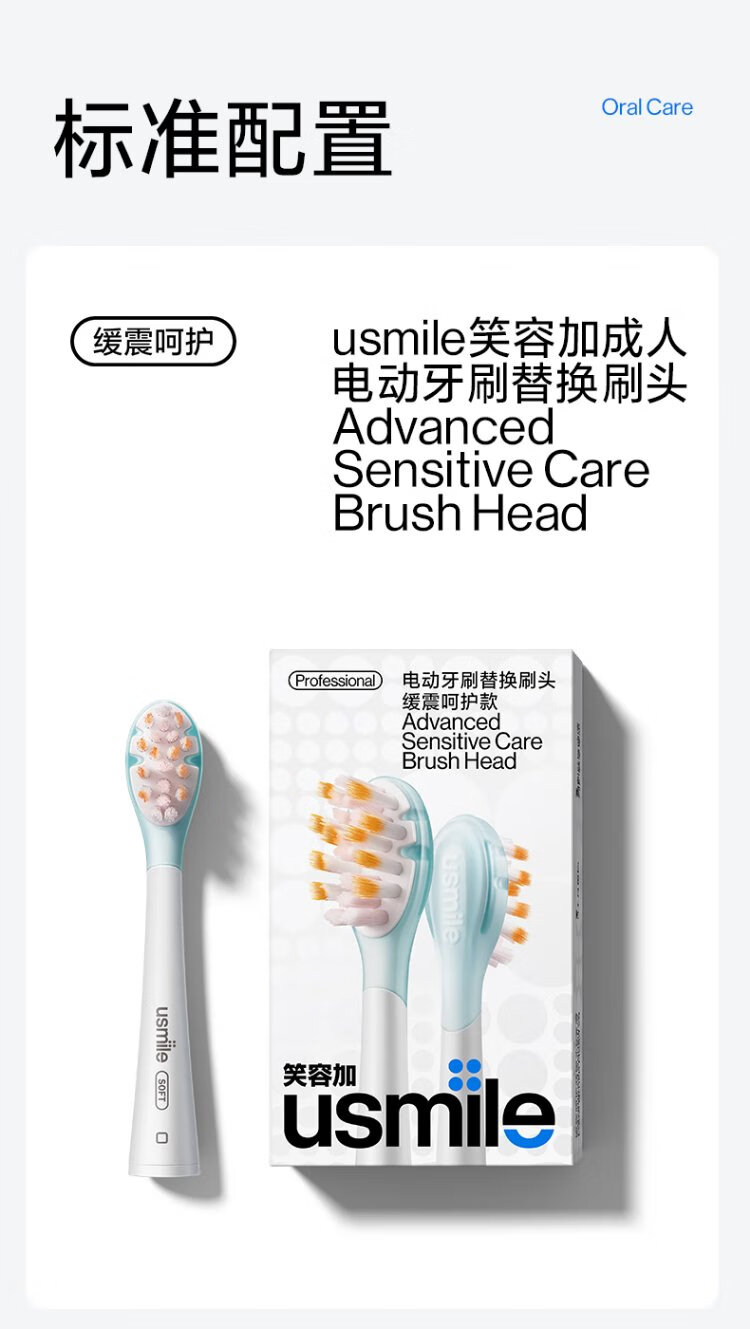 Usmile smile plus electric toothbrush head for adults with sensitive gums, cushioning and care type - 2 pieces, suitable for usmile adult toothbrushes