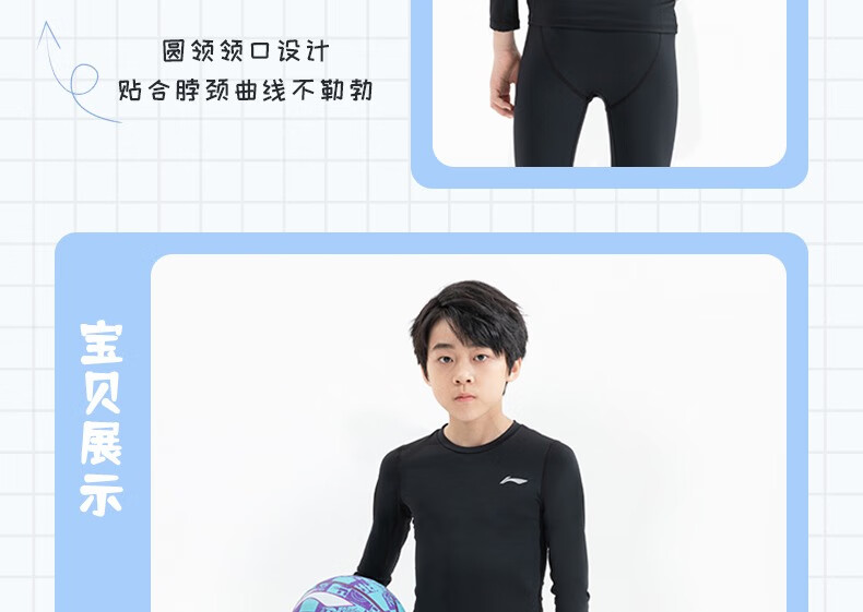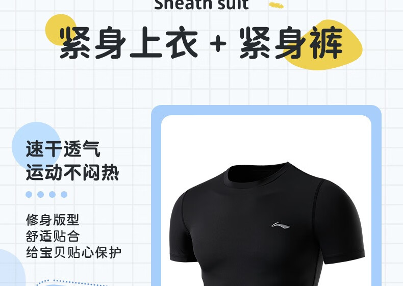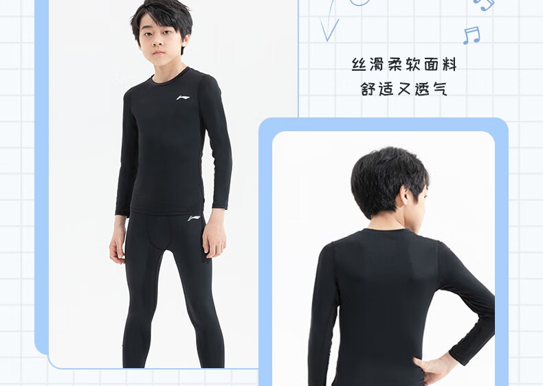 Li Ning (LI-NING) children's tights training clothes quick-drying sports suits running men's and women's autumn and winter basketball football badminton clothes