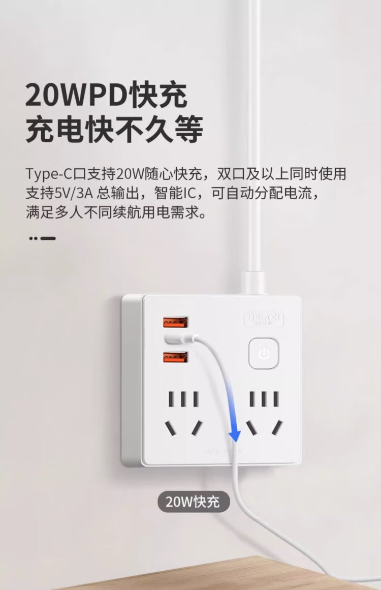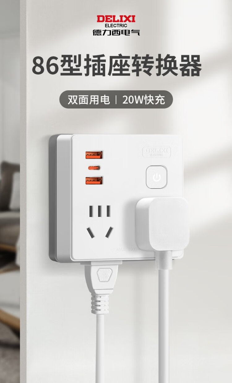 DELIXI 20WPD fast charging 86-type socket converter/conversion plug/USB+Type-c socket extension/one-to-multiple/plug strip/row wireless master control switch