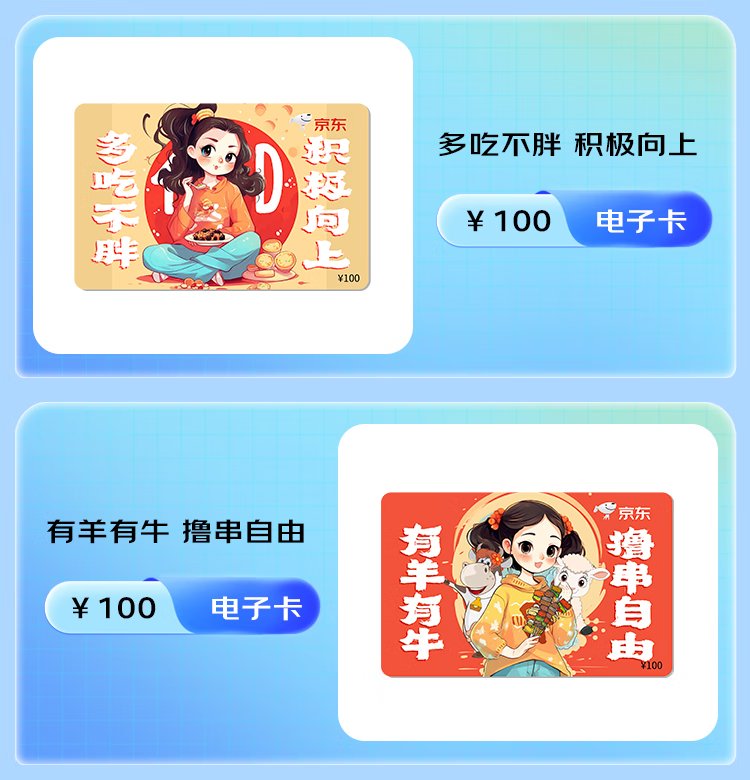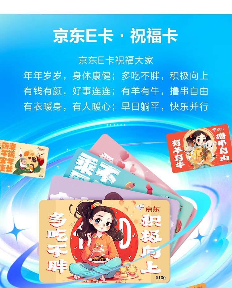 Jingdong E Card Eat More and Not Get Fat Blessing Card 100 Face Value (Electronic Card) Jingdong Mall Official Gift Card/Shopping Card Pickup Card Gifts/Employee Benefits/Activity Prizes