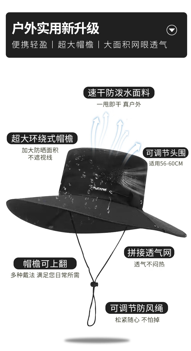 Woodpecker (TUCANO) large-brim sun hat for men in summer, anti-UV, hollow, breathable, mountaineering and fishing visor, quick-drying sun fisherman hat