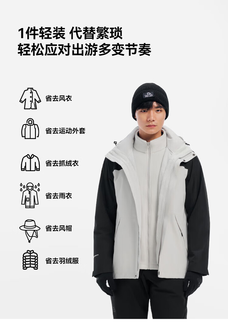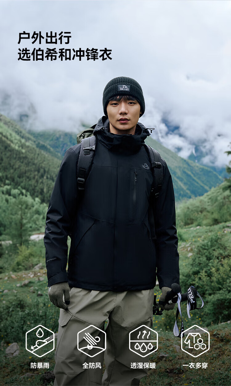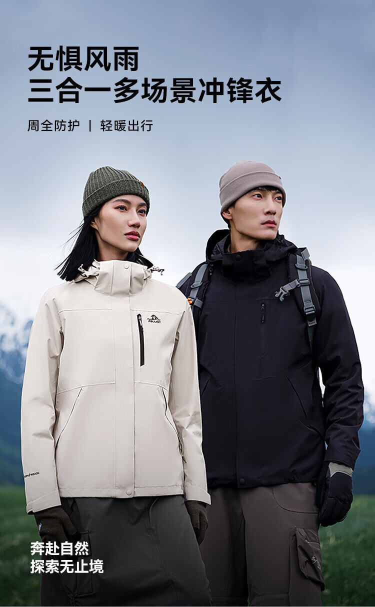 Pelliot Mountain Classic 2.0 Jacket 3-in-1 Autumn and Winter Men's and Women's Outdoor Warm Jacket 11340105 Black L
