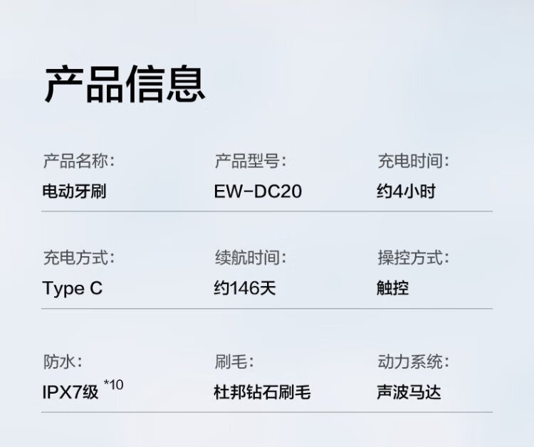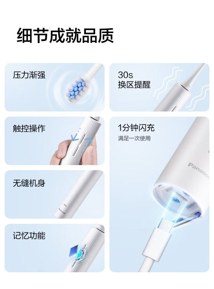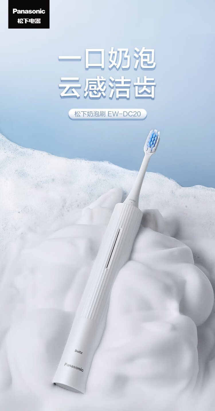 Panasonic Electric Toothbrush Milk Foam Brush Removes Stains and Protects Gums Double Effect Dentist Recommends Sliding Screen Unlock Control Battery Long Life Holiday Gifts Birthday Gifts for Boyfriends and Girlfriends DC20 White