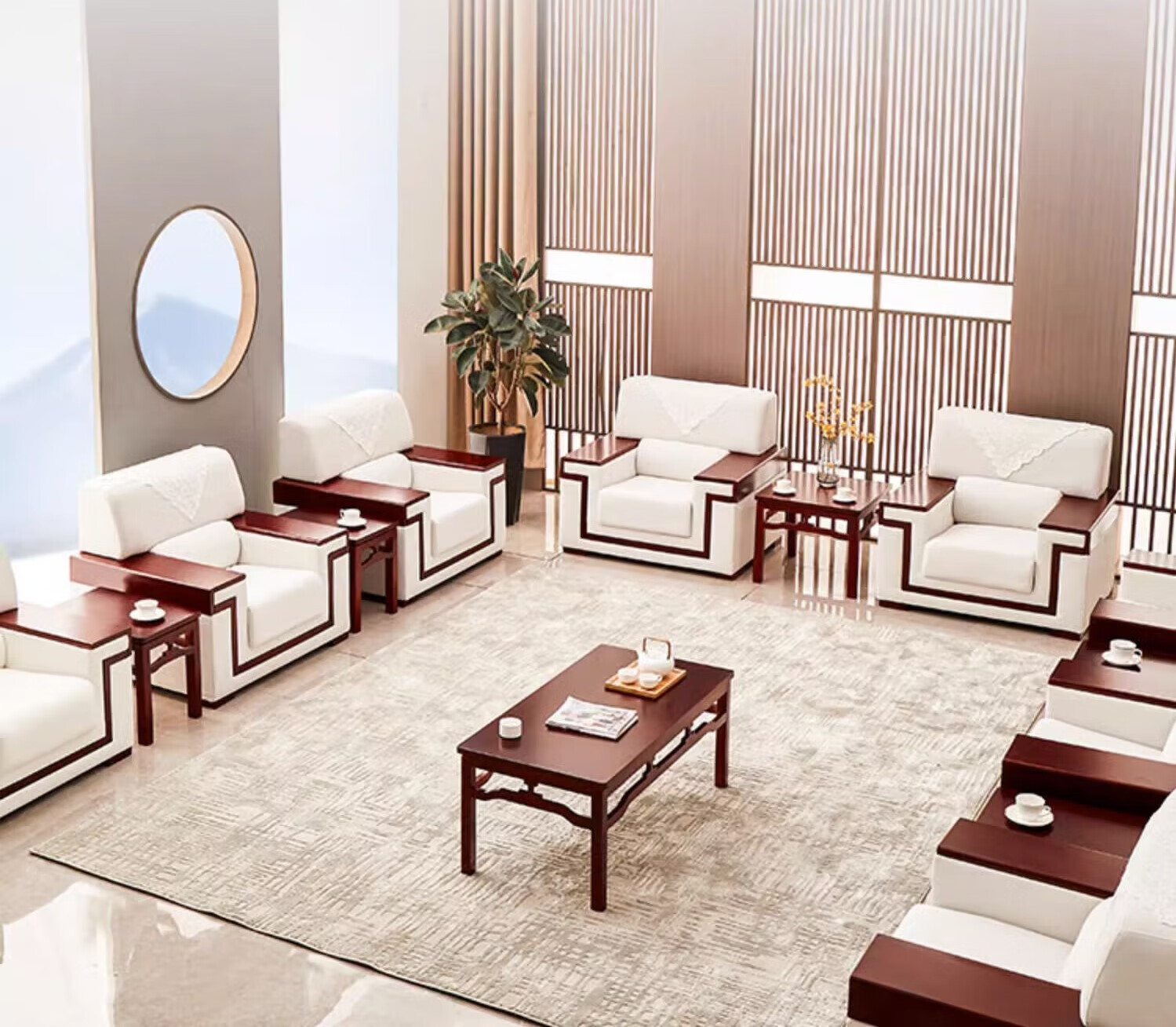 Qingzhai Conference Room Reception Conference Sofa Chinese Fabric Office Sofa Coffee Table Set Reception Sofa Coffee Table 40*60