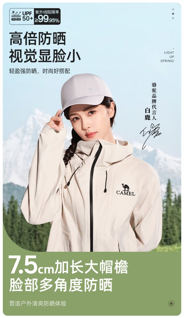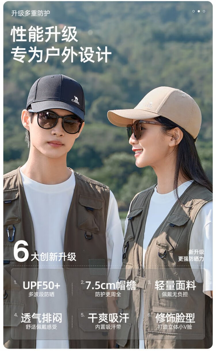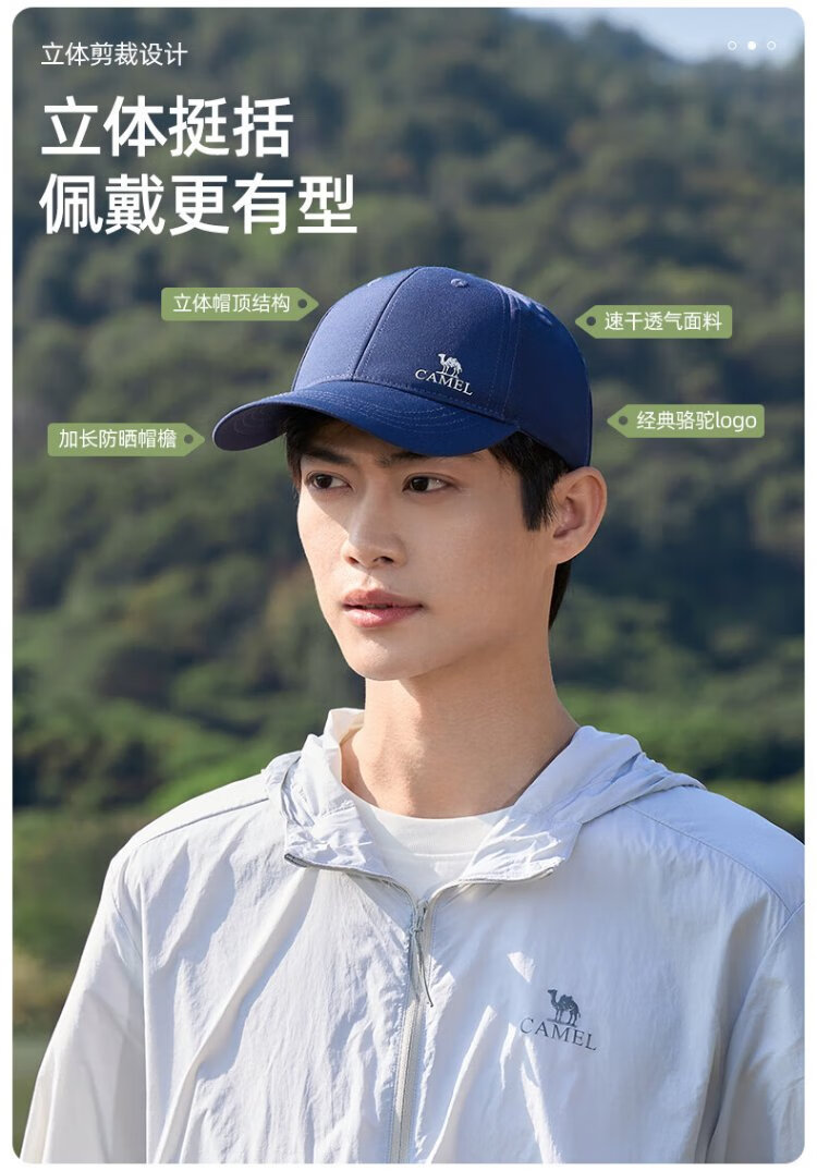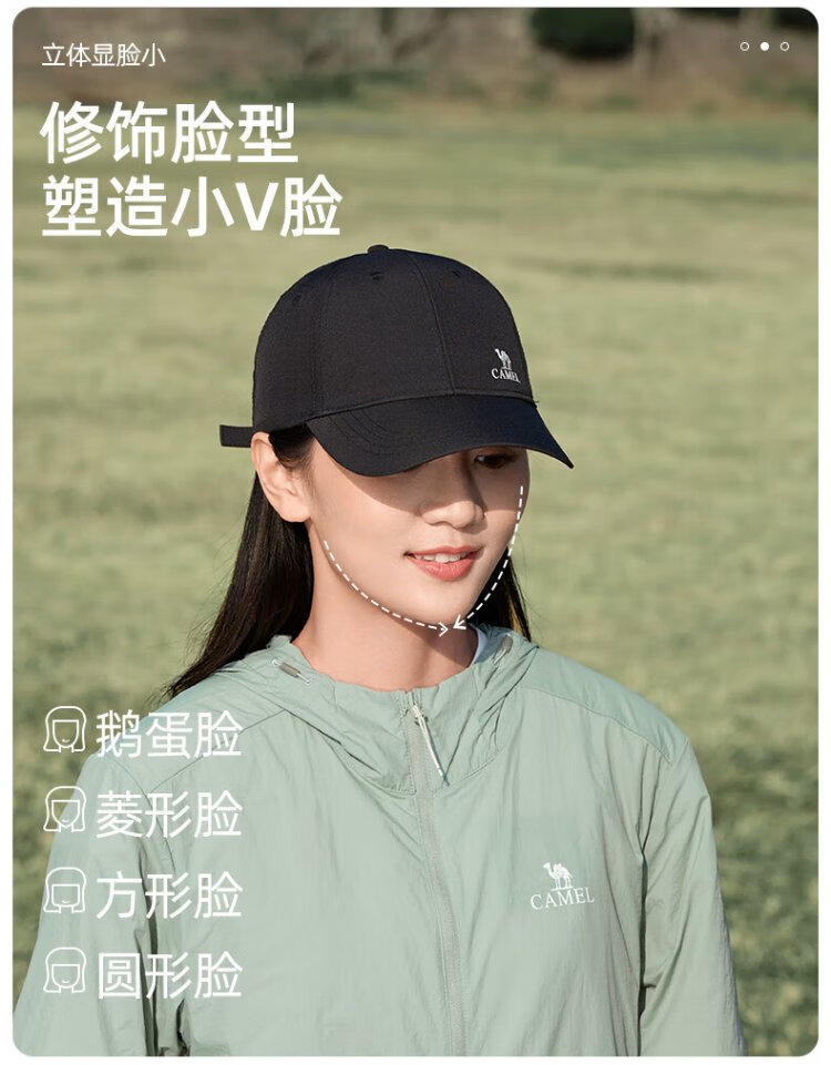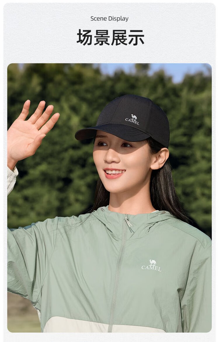 Camel (CAMEL) outdoor sports baseball cap for men and women, breathable sun hat, face covering cap 133BARC017 Phantom Black