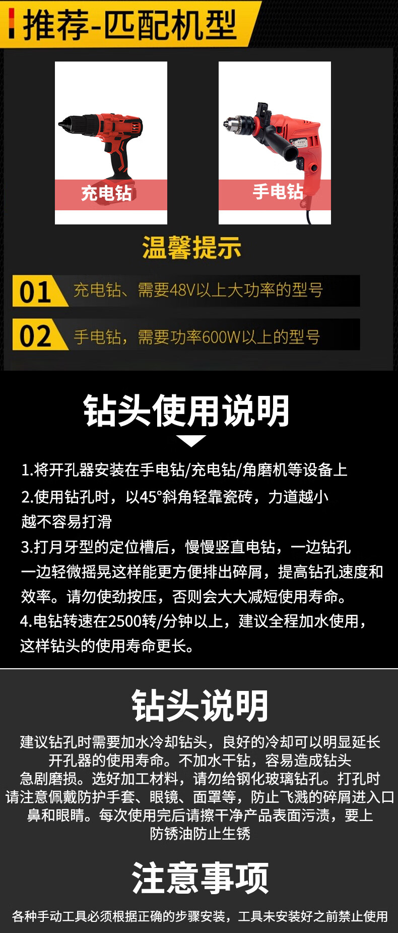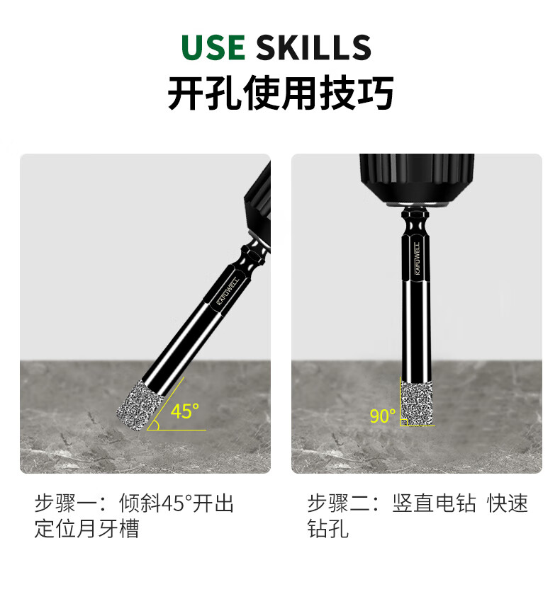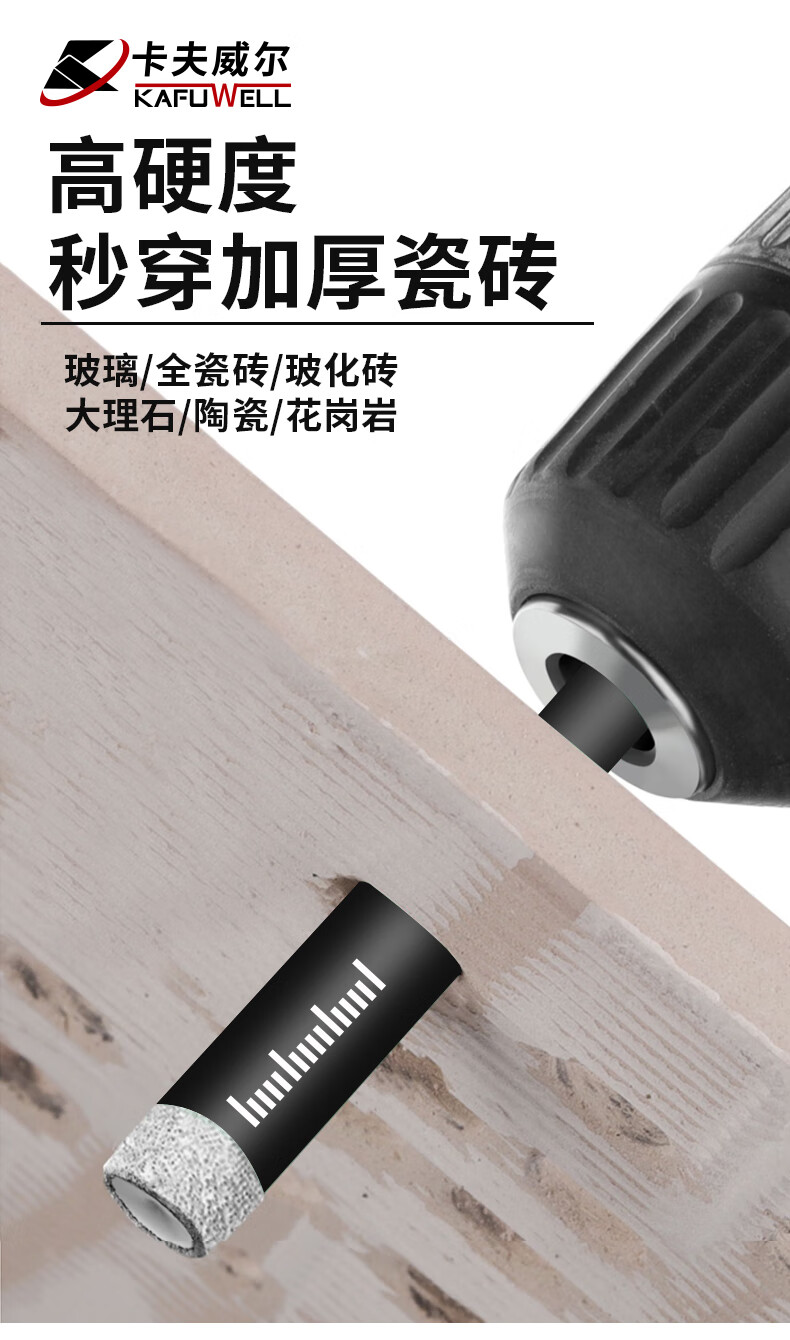 Kraftwell 3-piece emery tile drill bit glass ceramic hole hexagonal handle 6-8-10mm AI4615