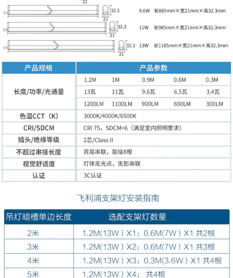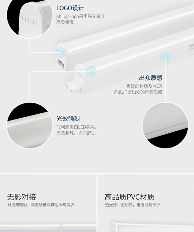 Philips (PHILIPS) Minghao series T5 LED integrated bracket light fluorescent energy-saving lamp complete set 0.3 meters 3.4W warm white light 4000K does not include connecting wires and power cords