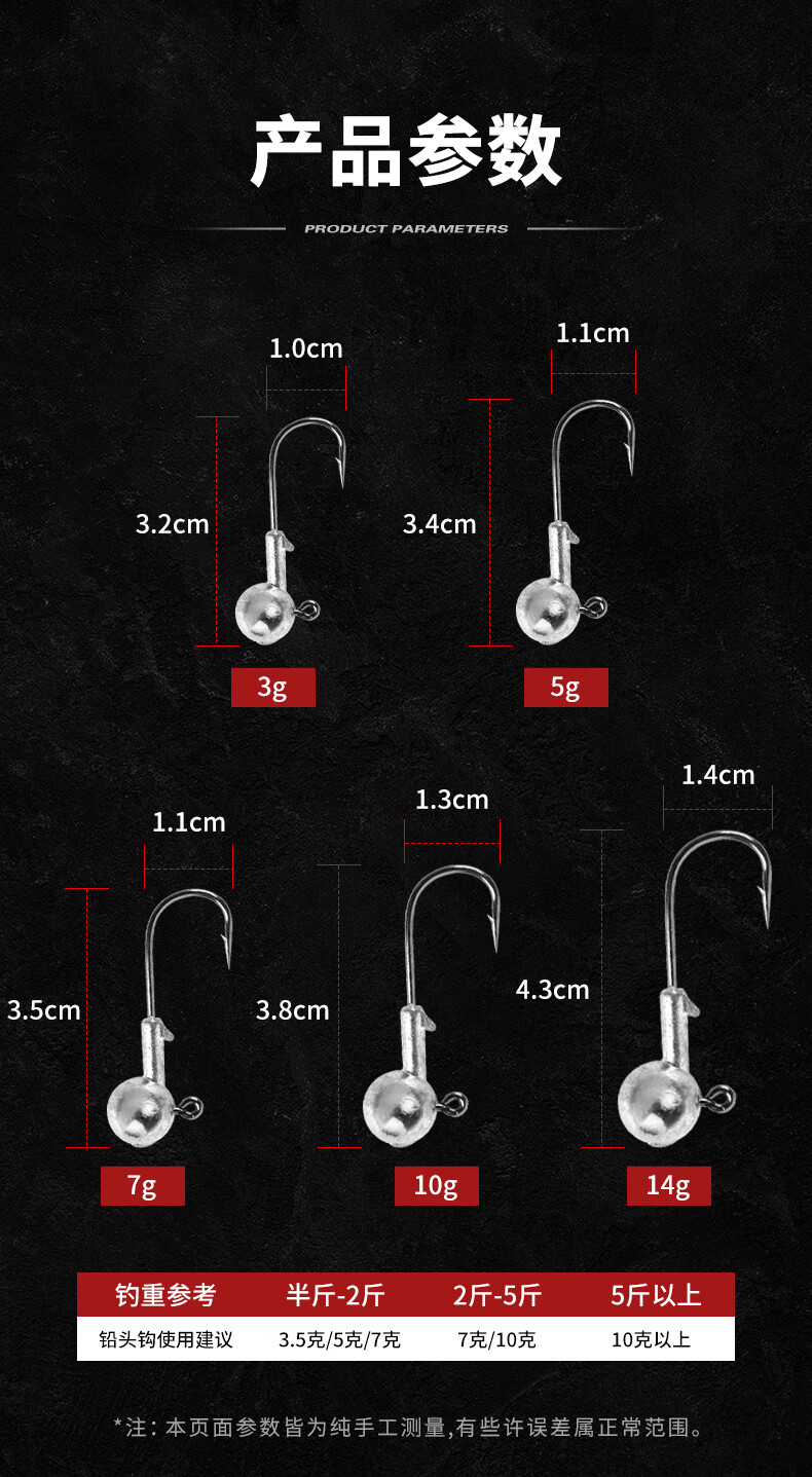 Bear fire lead head hook 20 pieces 10g strengthened soft worm hook Luya bait universal Luya hook bass mandarin fish soft bait fishing hook