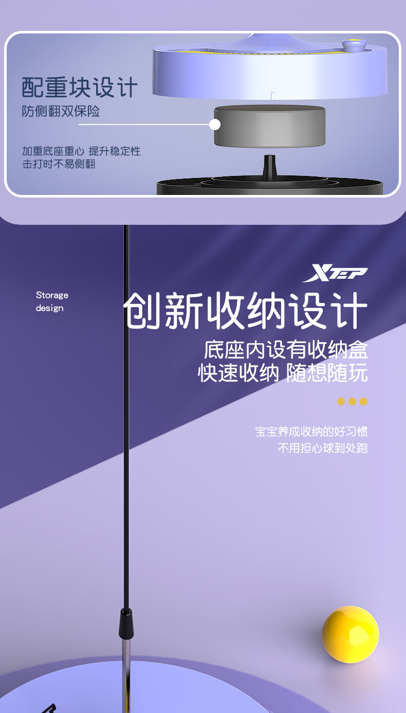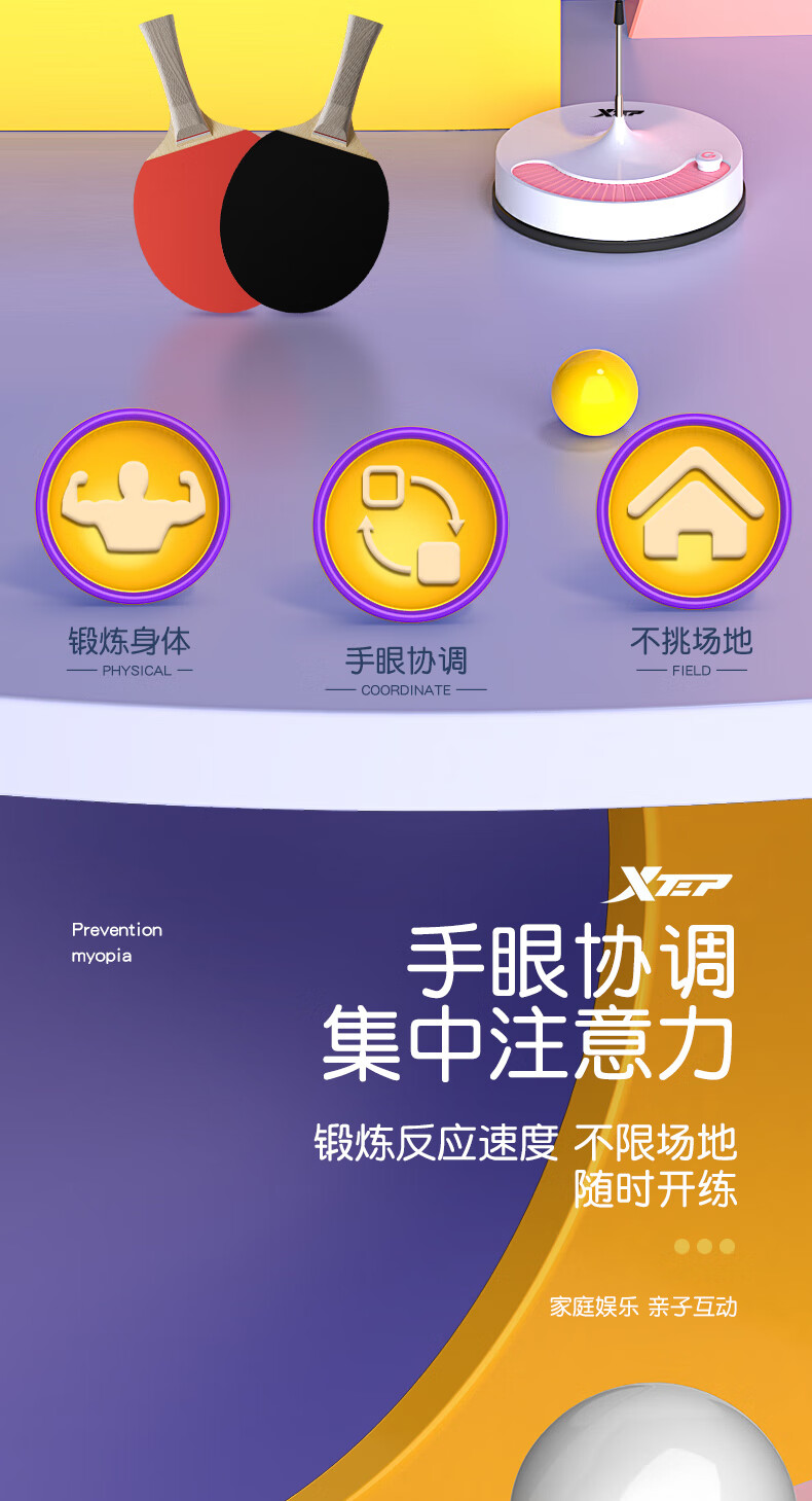 XTEP children's professional table tennis trainer home indoor children's toy table tennis racket trainer blue
