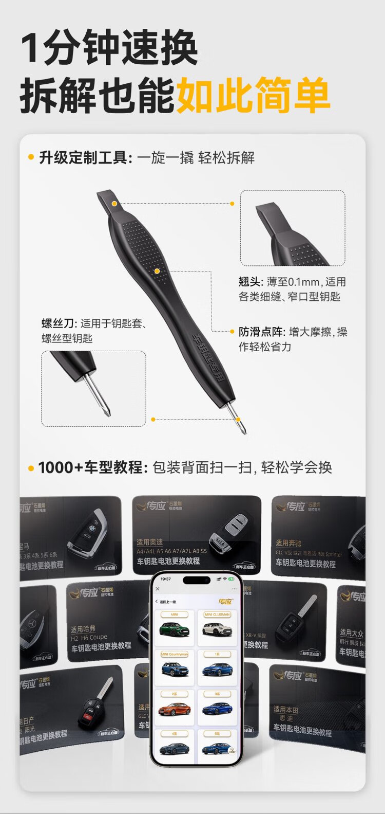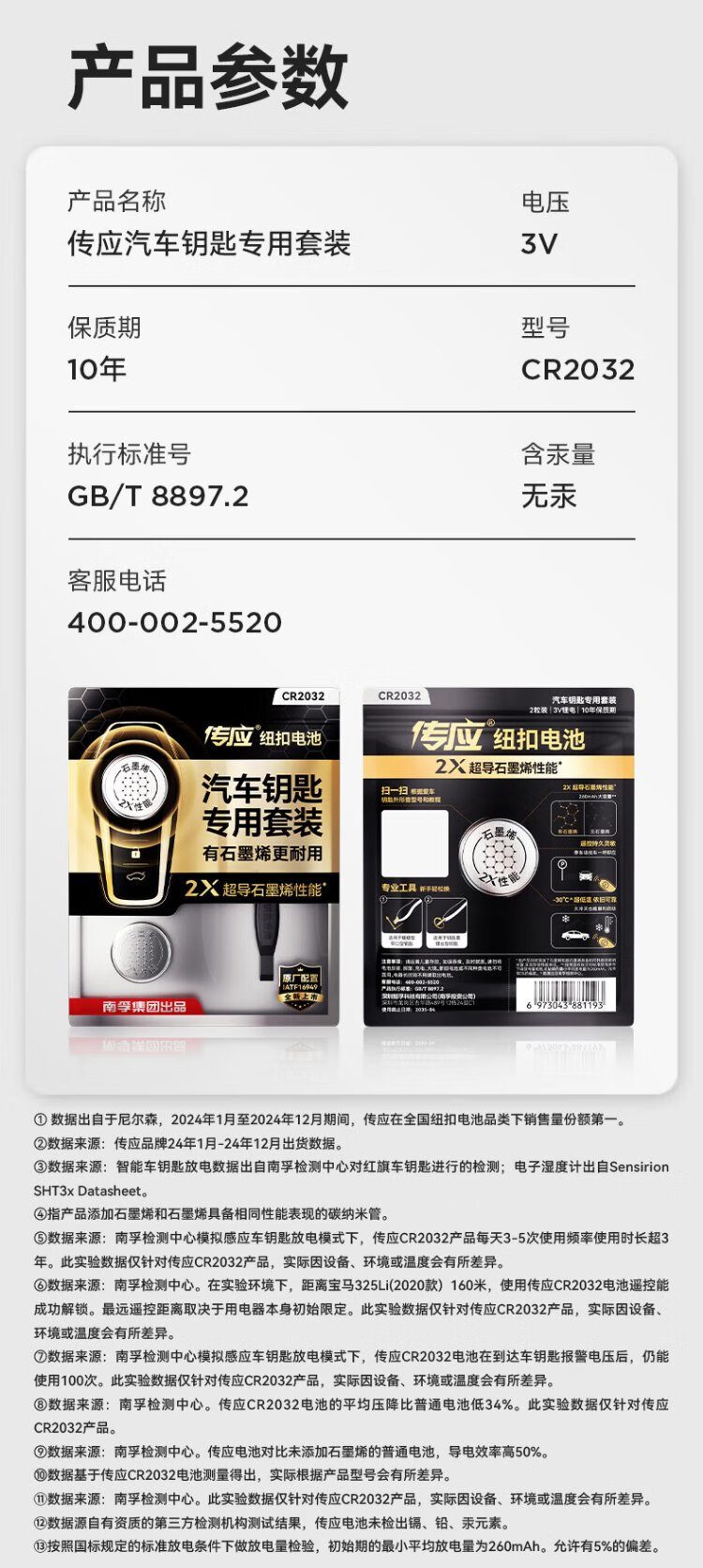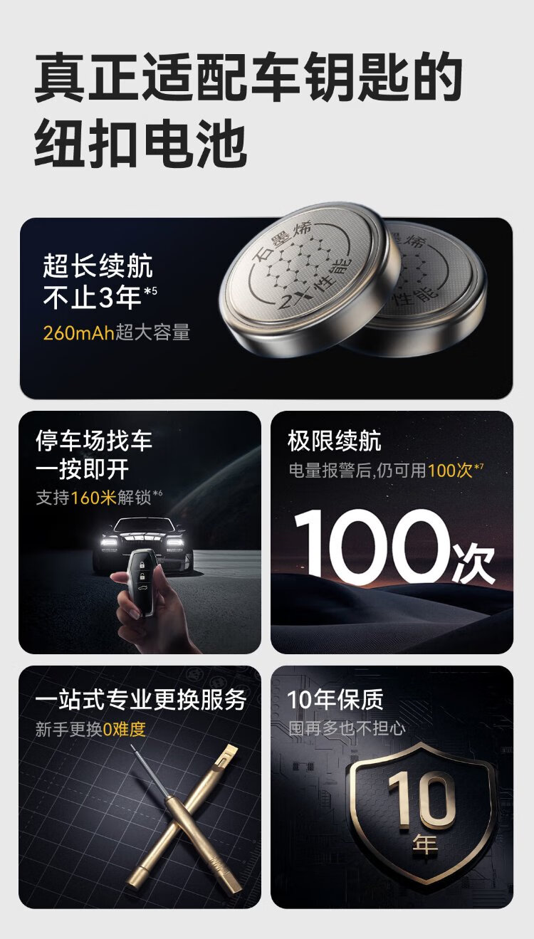 Chuanying Nanfu CR2032 graphene button battery 2 pieces, dedicated for car keys, built-in crowbar + screwdriver, suitable for Audi/BMW/Volkswagen/Buick/Mercedes-Benz, etc.