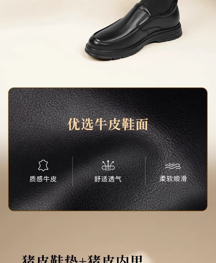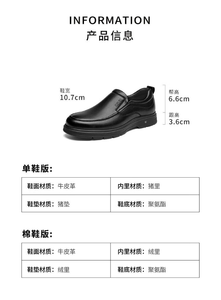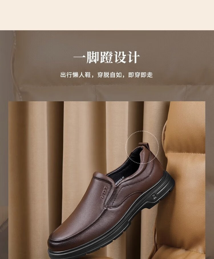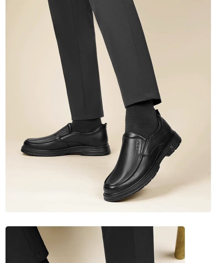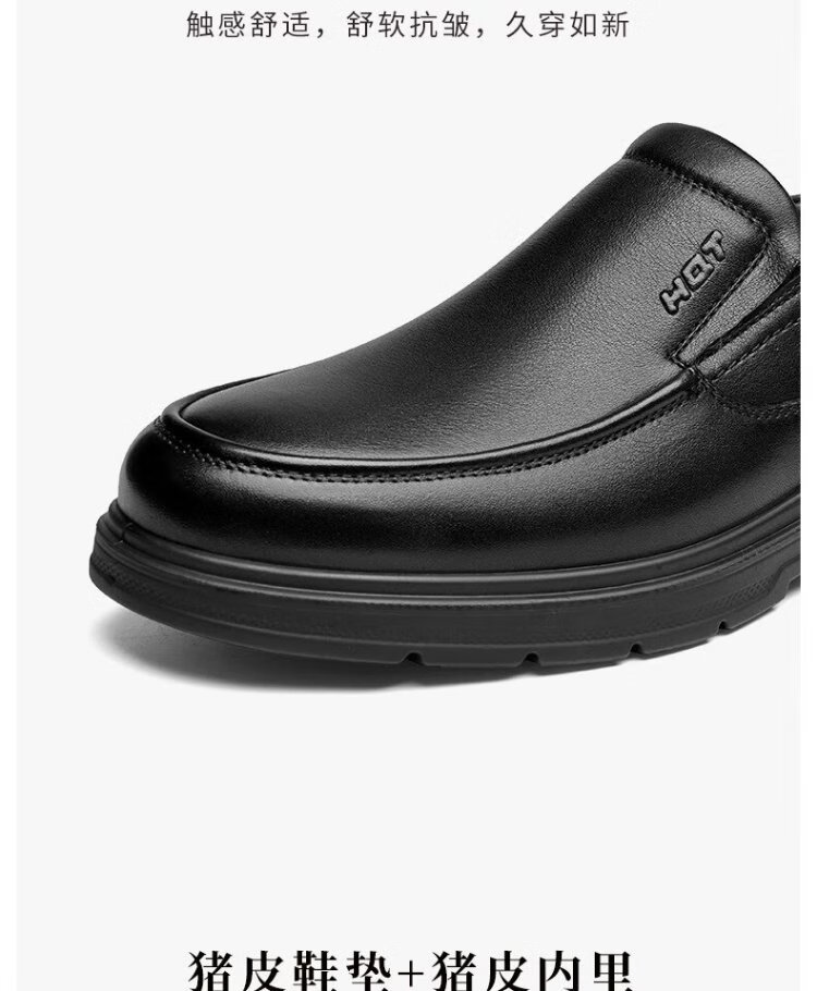 Red Dragonfly autumn and winter men's slip-on soft sole business casual leather shoes middle-aged dad shoes men's shoes WTA33107 black 38