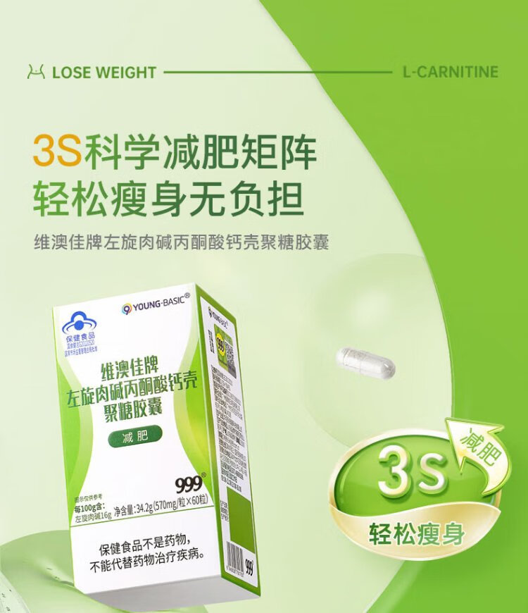 999 L-Carnitine Calcium Pyruvate Chitosan Weight Loss Capsules 60 Capsules Slimming Belly Reduce Fat Burning Black Coffee