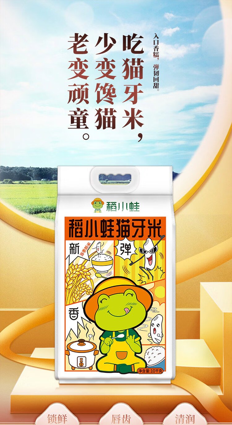 Rice frog 2024 new rice, cat tooth rice, long grain fragrant rice 10kg, indica rice, southern silk seedling rice, new rice in season 20Jin Jin is equal to 0.5kg