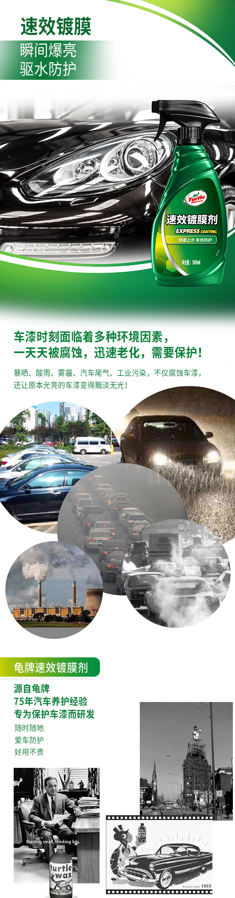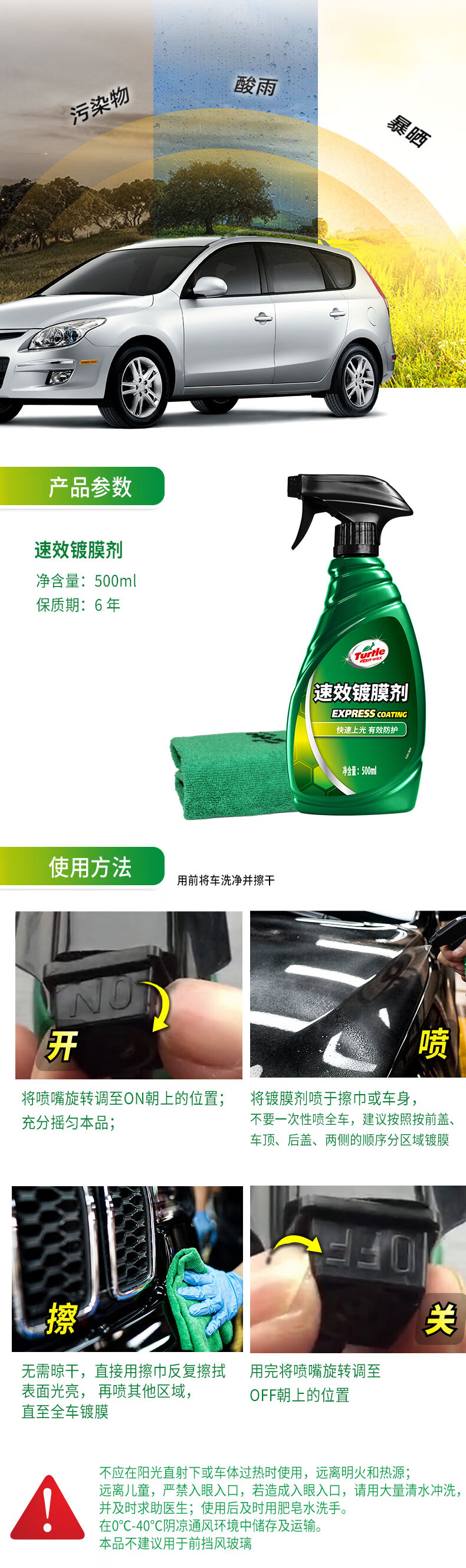 Turtle Wax fast-acting car coating agent car paint protective polish liquid crystal coating spray 500ml*2 bottles TC123006