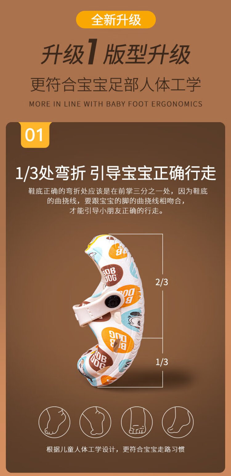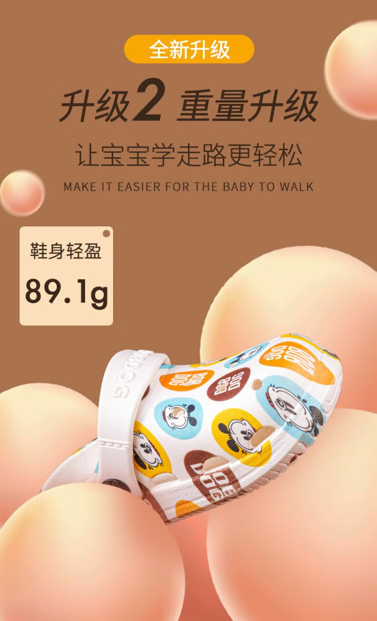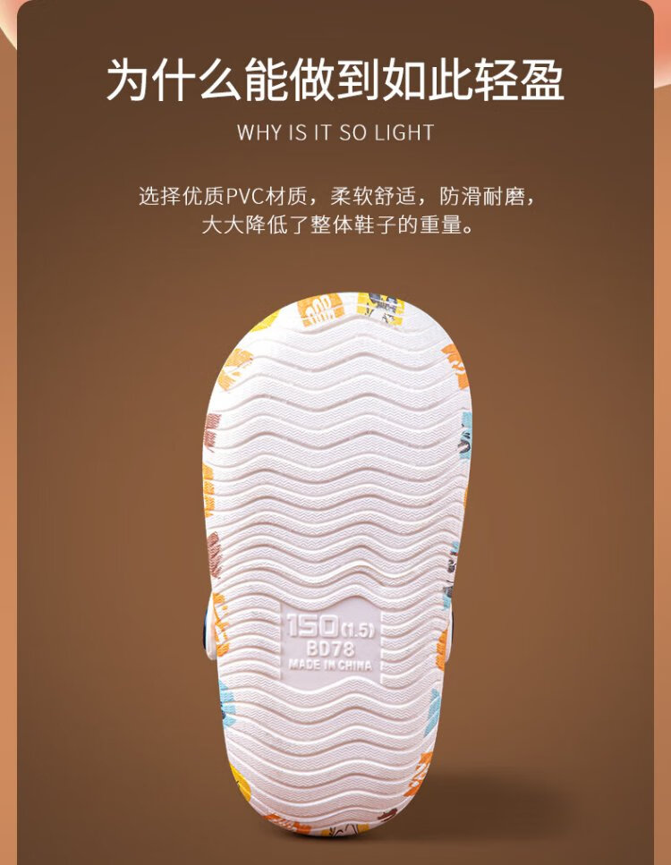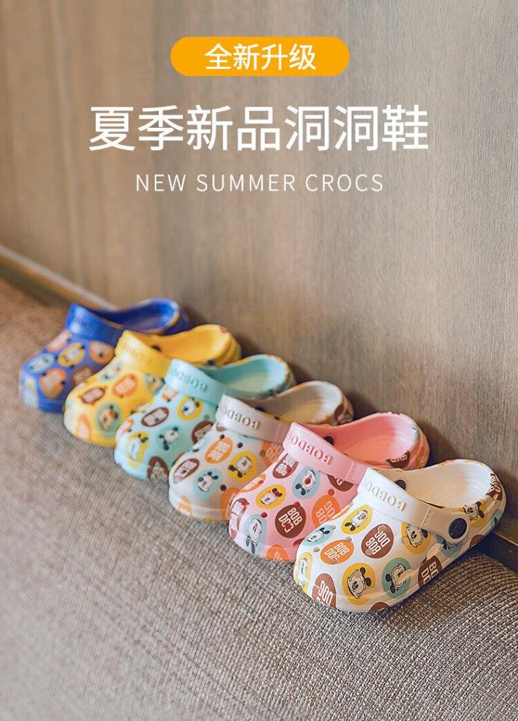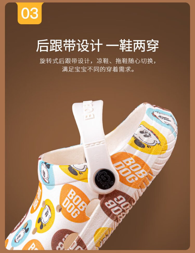 BOBDOG children's slippers, boys and girls, baby sandals, indoor and outdoor soft-soled clogs, off-white, size 160