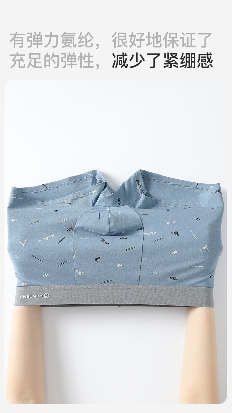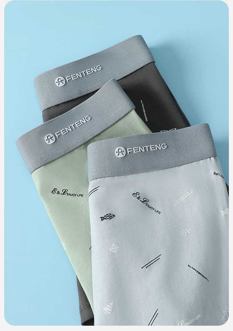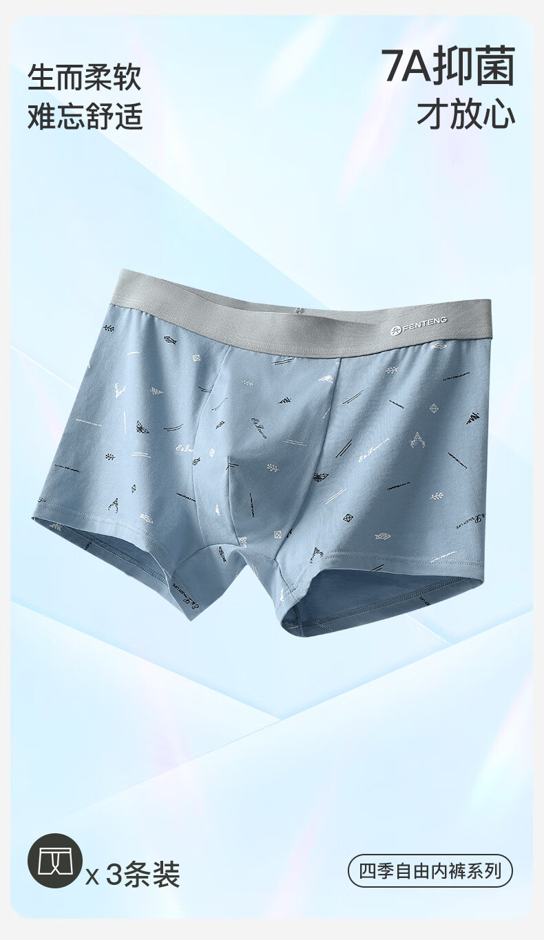 Fenton underwear men's pure cotton 3-pack printed men's thin close-fitting mid-waist boxer briefs