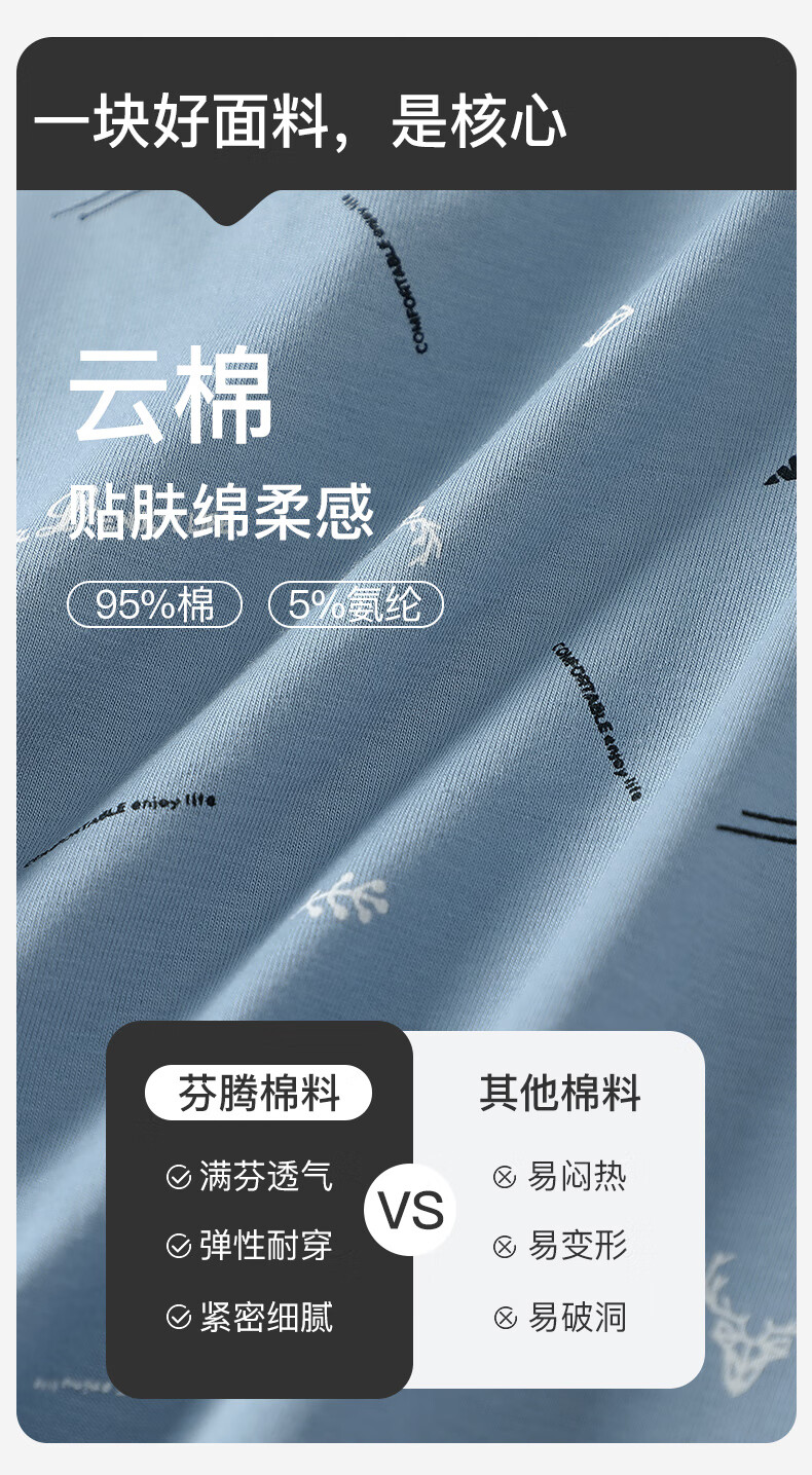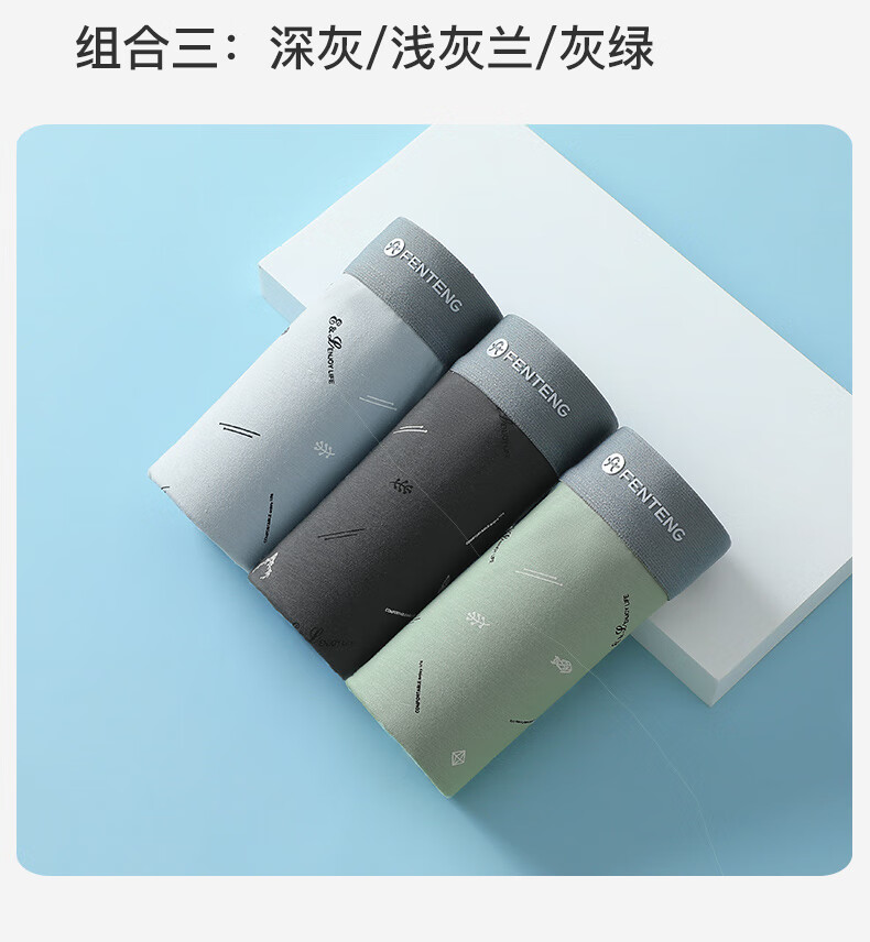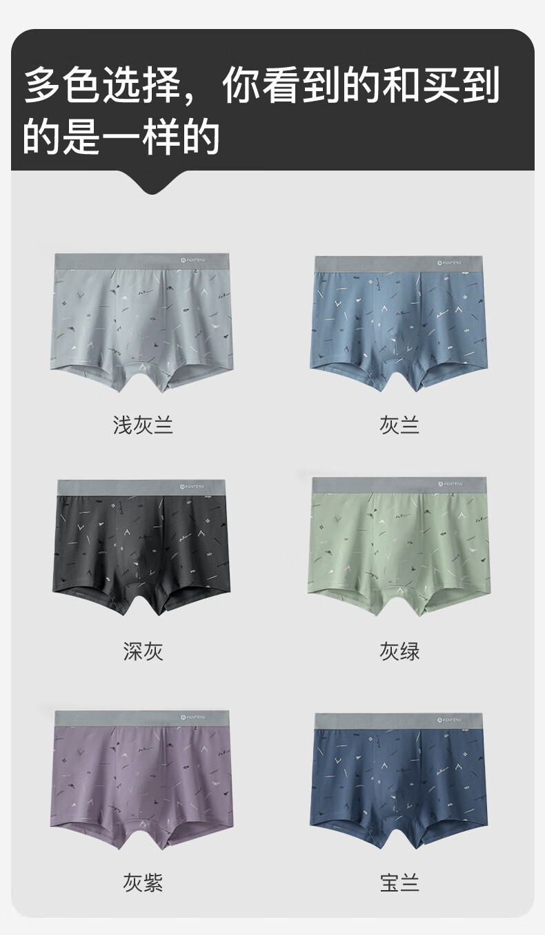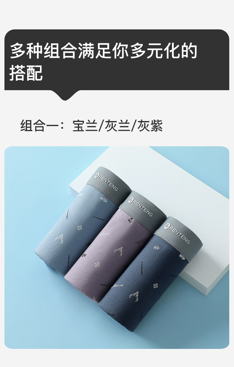 Fenton underwear men's pure cotton 3-pack printed men's thin close-fitting mid-waist boxer briefs