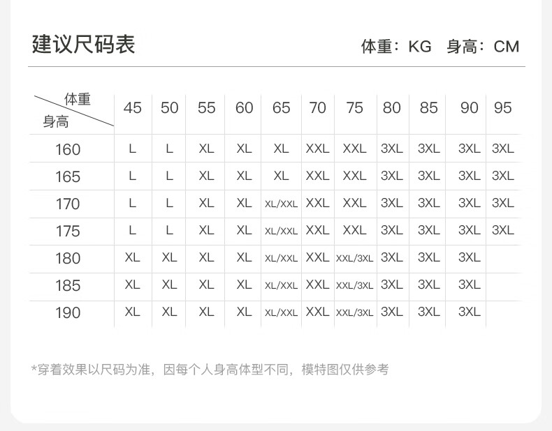 China (cm) 165 / 88-90 170 / 96-98 175 / 108-110 180 / 118-122 185 / 126-130