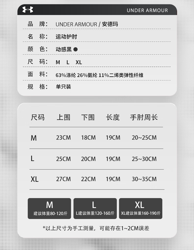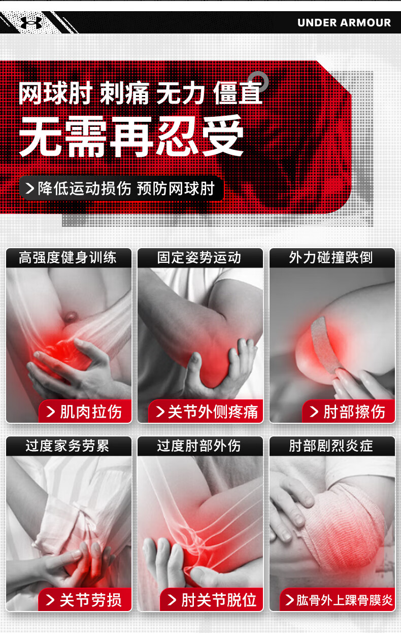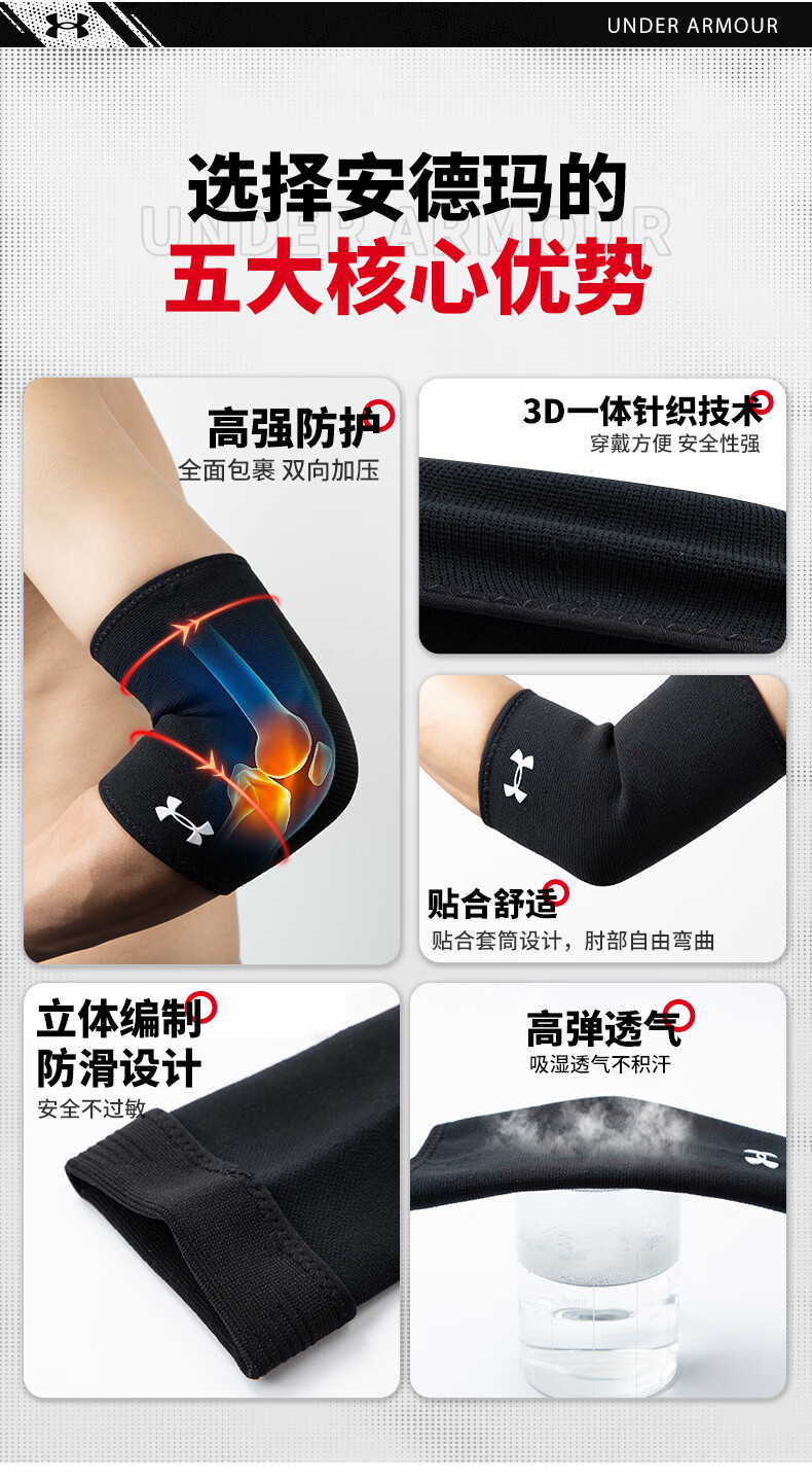 Under Armor men's and women's fitness protective basketball tennis badminton pressurized breathable elbow joint sports protective gear elbow pad L