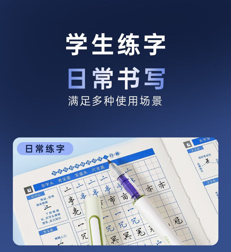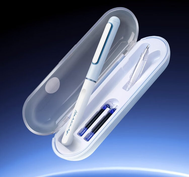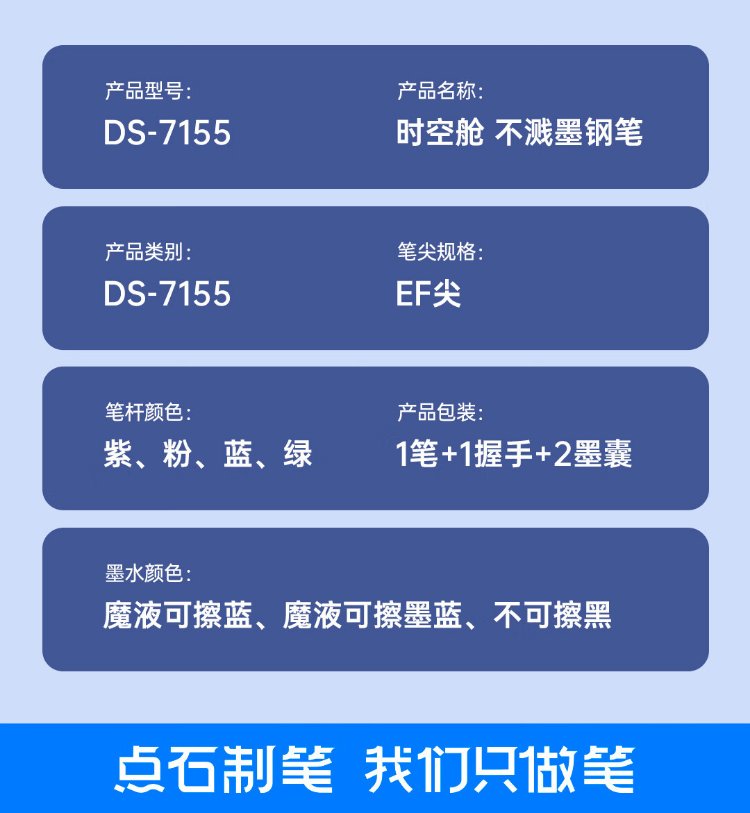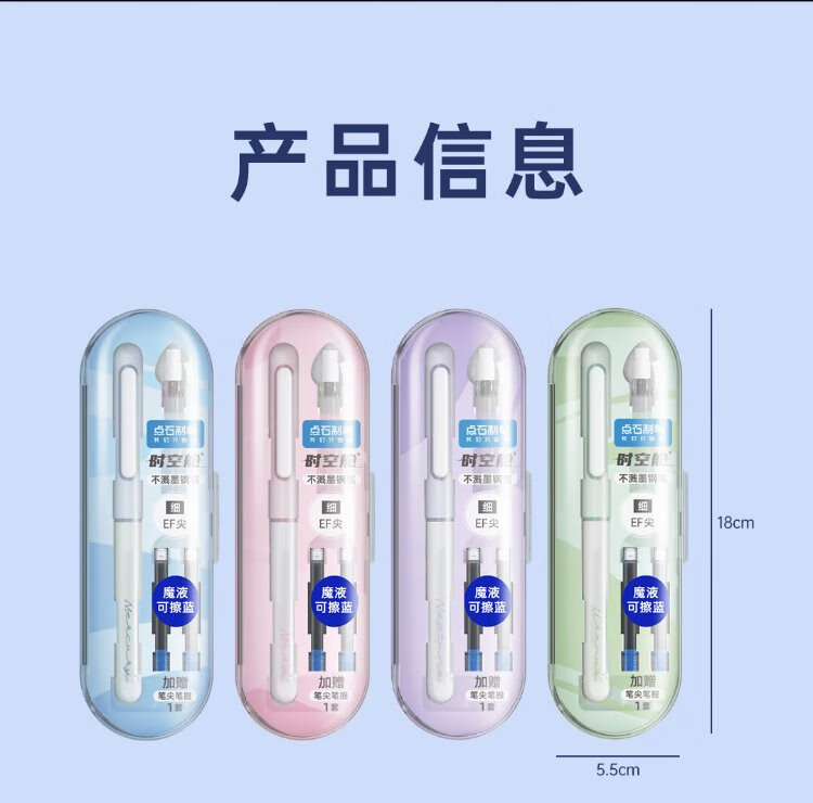 Midas-made pen, space-time capsule non-splashing fine-tip fountain pen, positive posture, third-grade calligraphy practice pen, school season 7155 blue rod-EF tip, magic liquid erasable blue