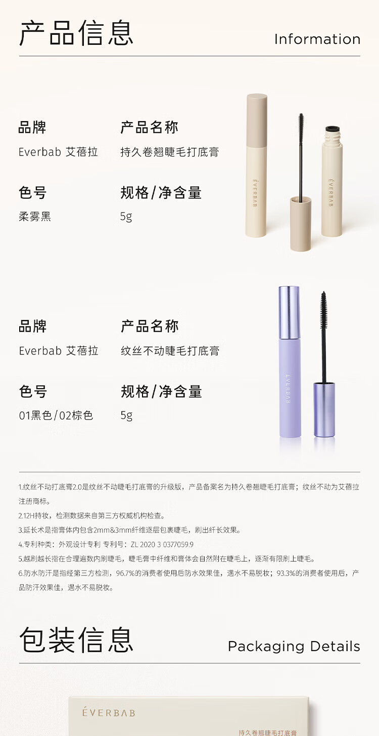 Everbab Ai Bei La Wen Si Fu Primer Mascara - an upgraded version that lasts and is not easy to smudge.