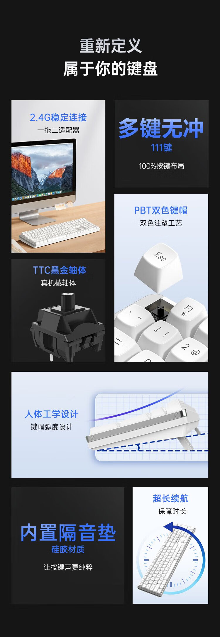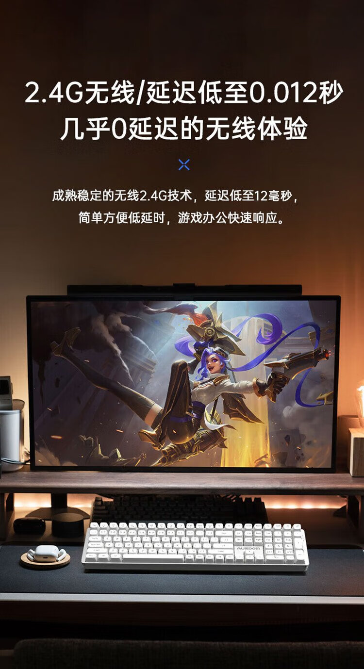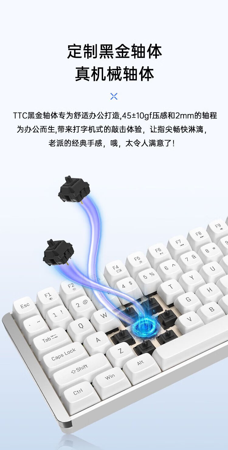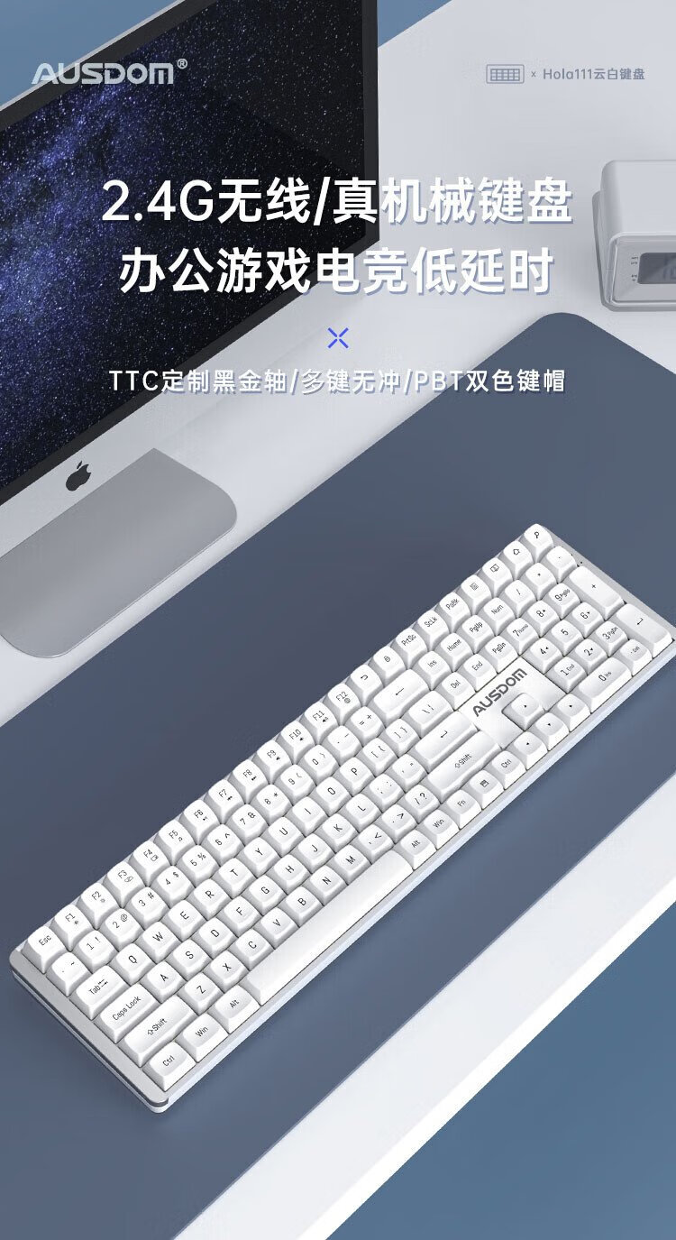 Aston Hola111 true mechanical keyboard wireless 2.4G gaming e-sports home office keyboard desktop laptop multi-key no punch 100% configuration cloud white