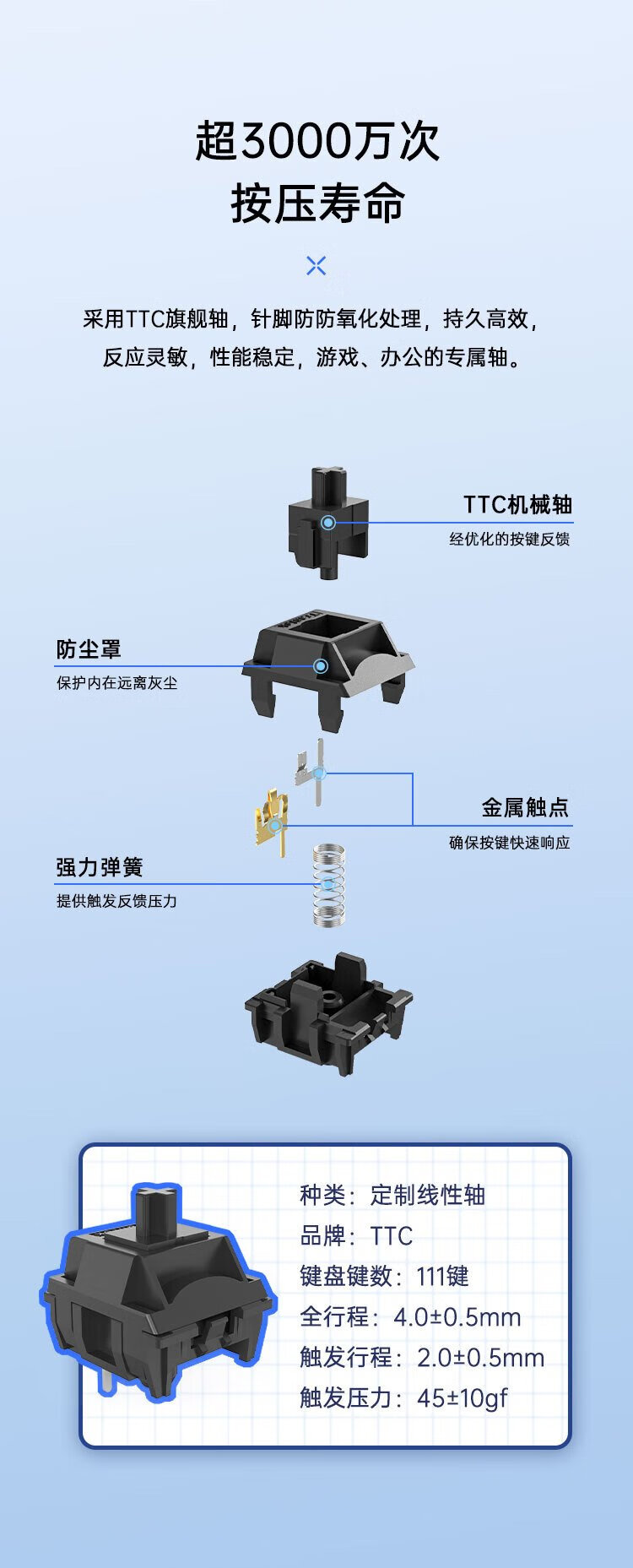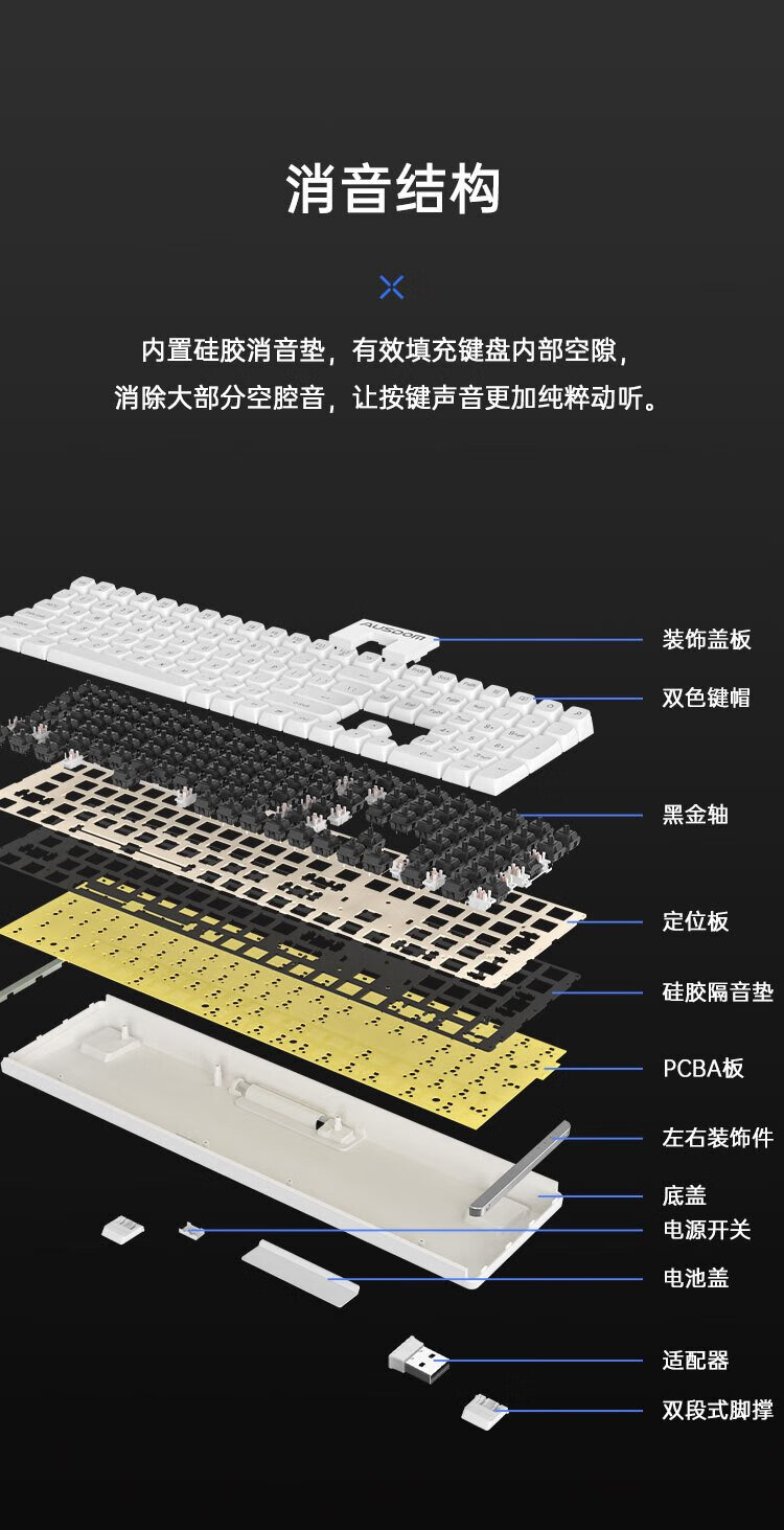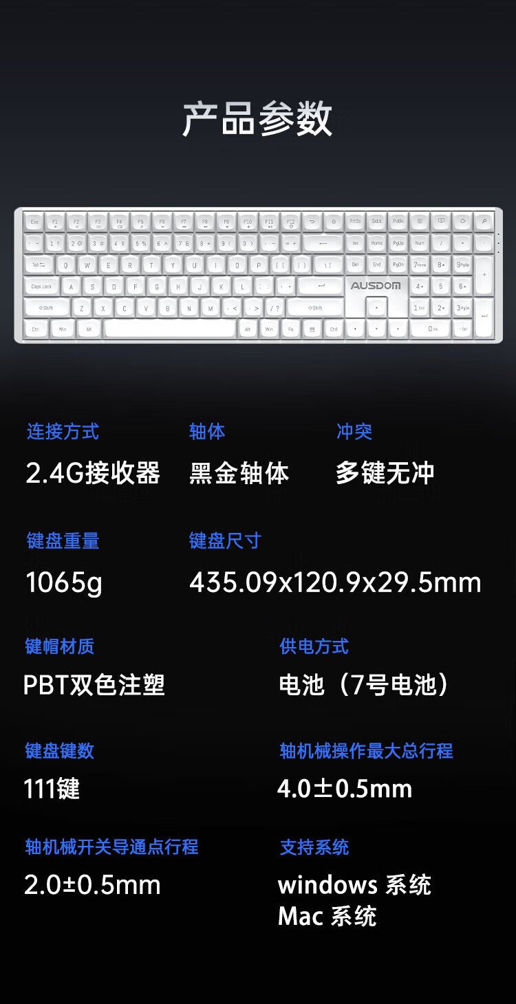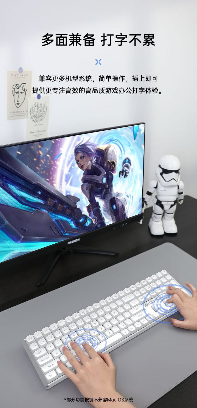 Aston Hola111 true mechanical keyboard wireless 2.4G gaming e-sports home office keyboard desktop laptop multi-key no punch 100% configuration cloud white