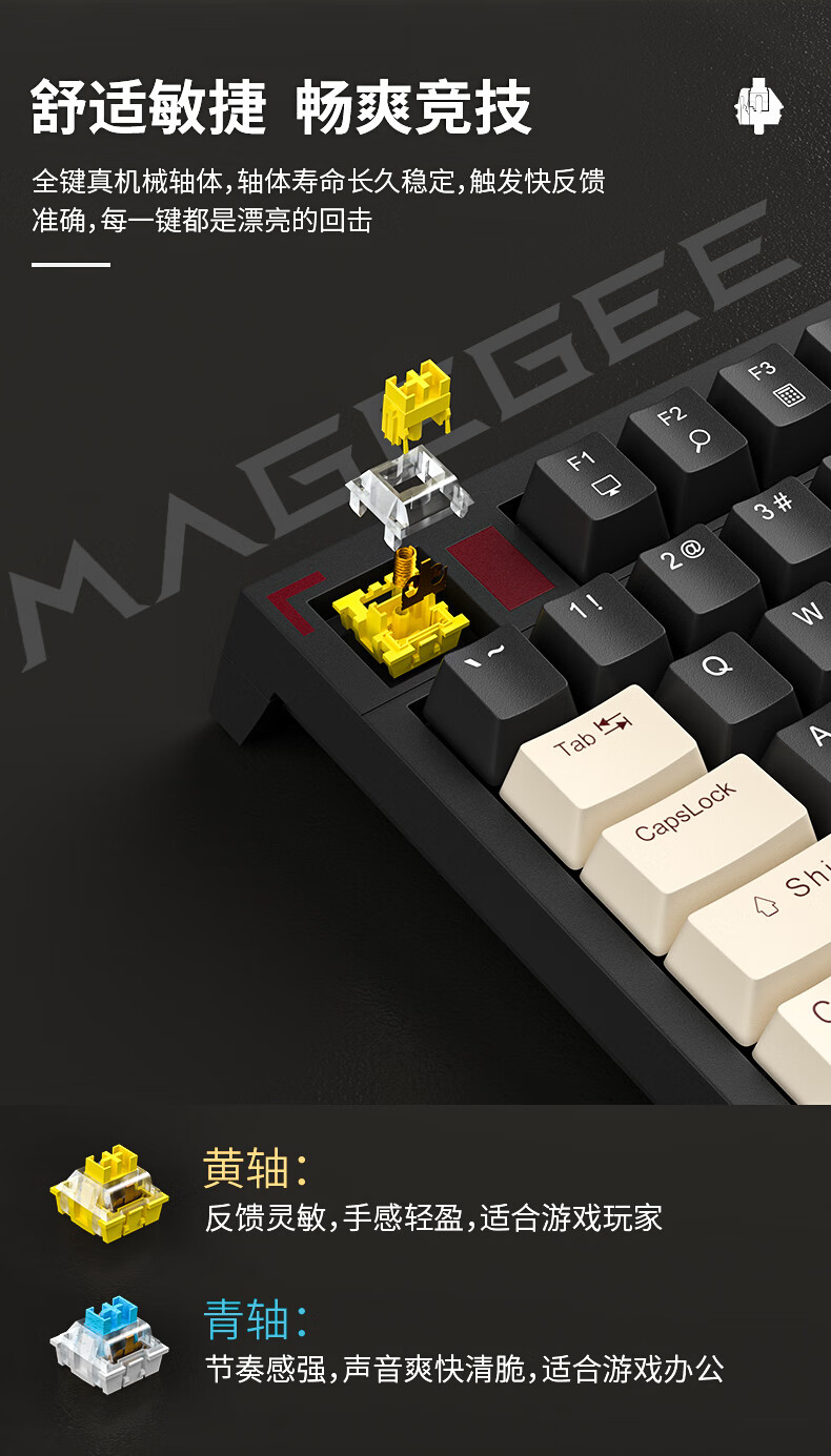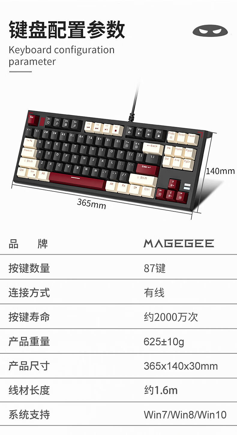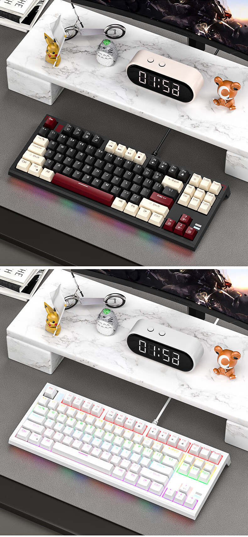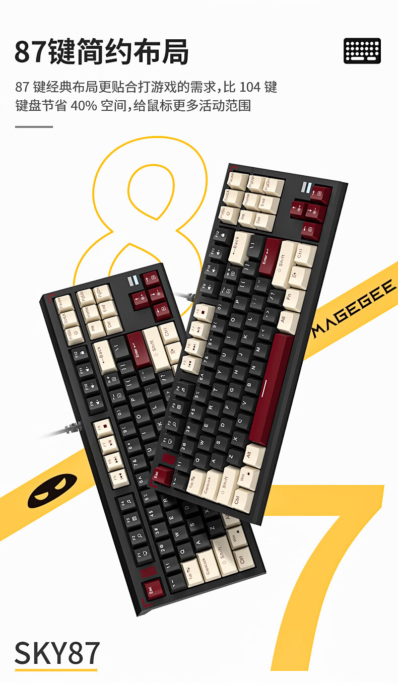 MageGee SKY 87 wired backlit keyboard 87-key gaming mechanical keyboard Business office comfortable keyboard Laptop mechanical keyboard White mixed light green switch