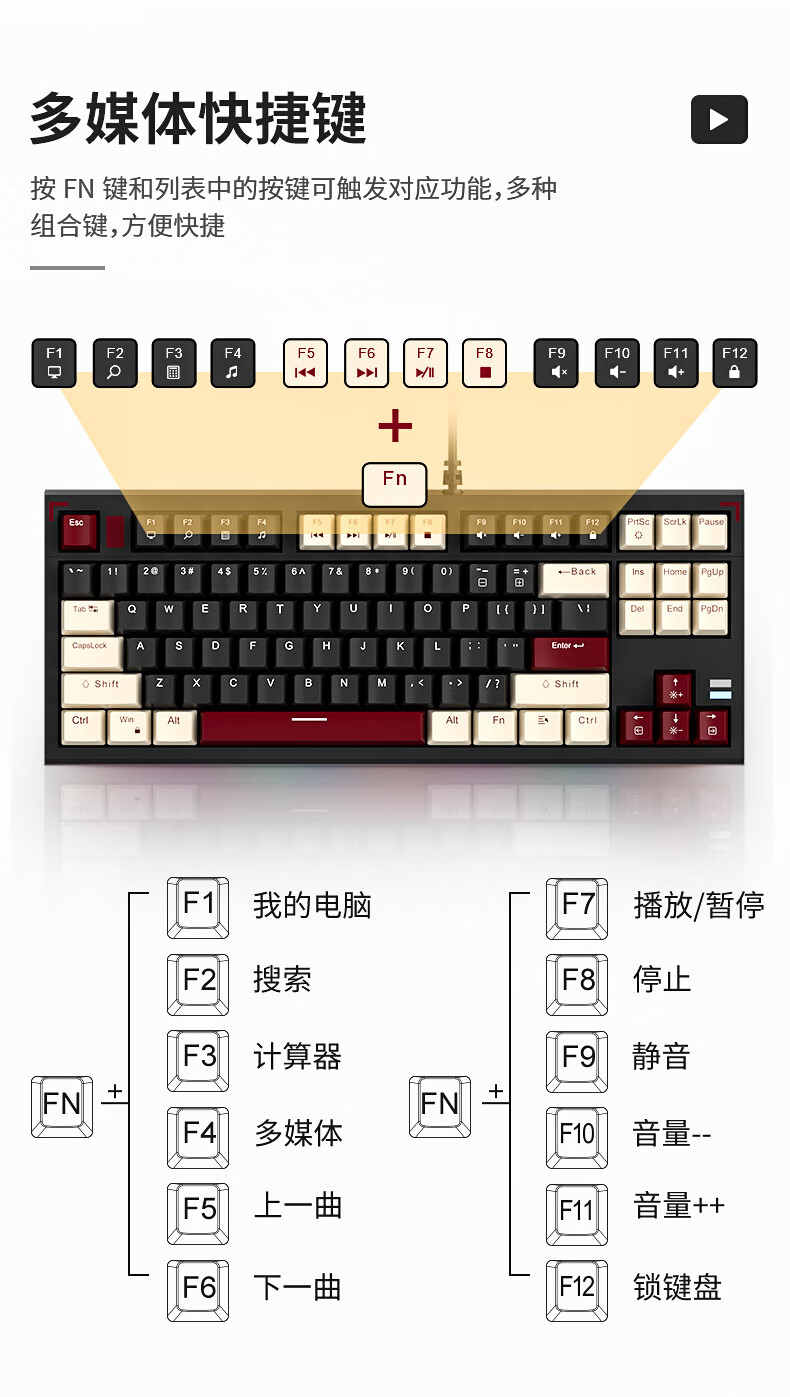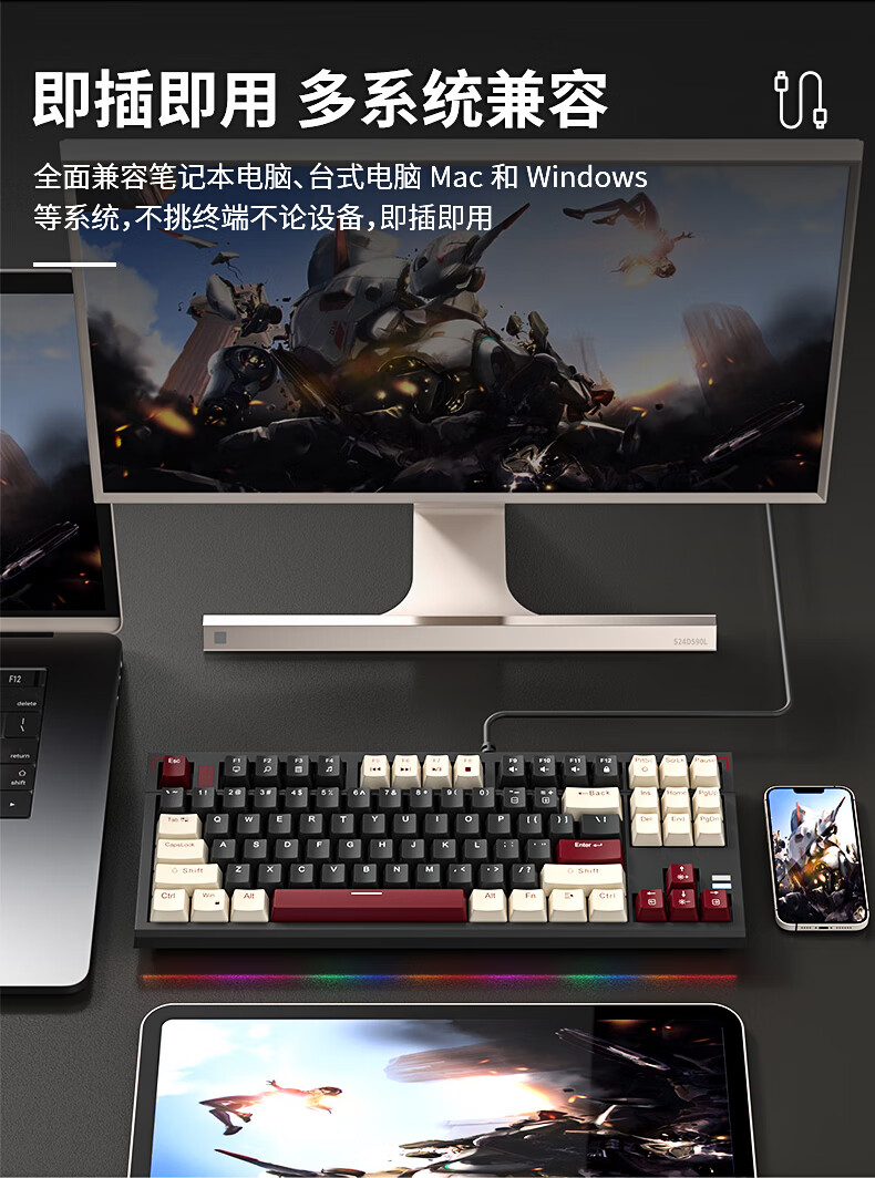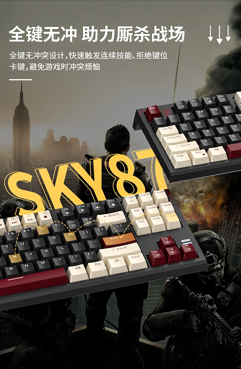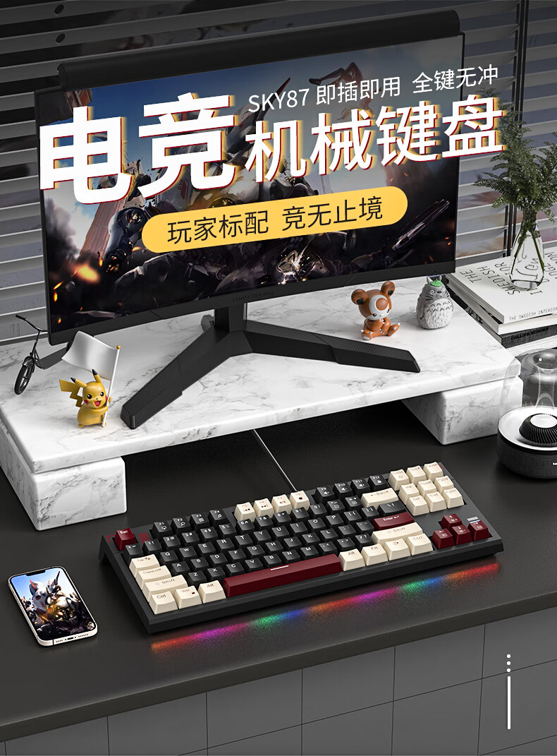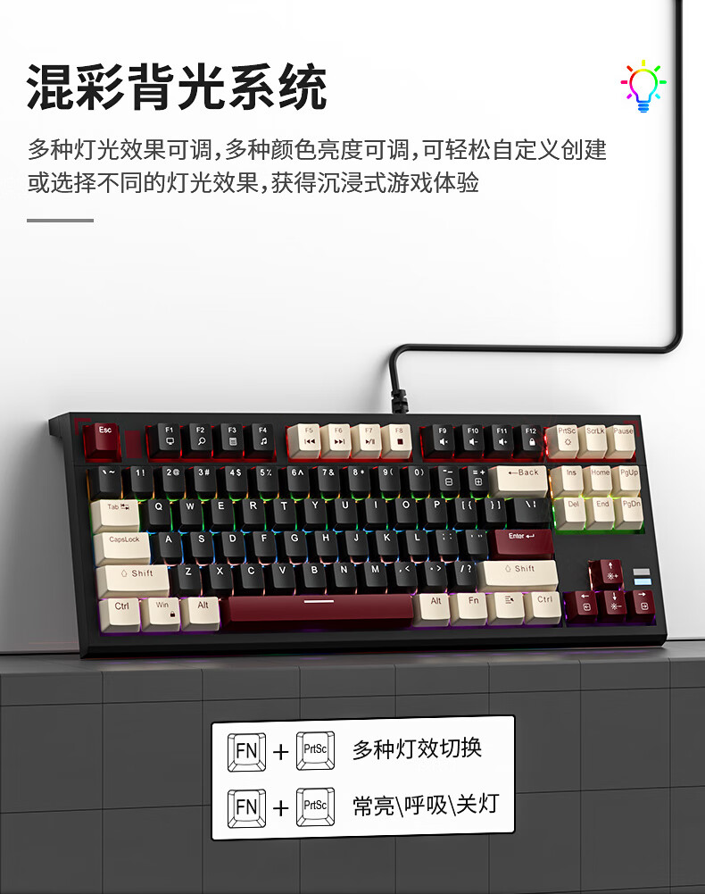 MageGee SKY 87 wired backlit keyboard 87-key gaming mechanical keyboard Business office comfortable keyboard Laptop mechanical keyboard White mixed light green switch