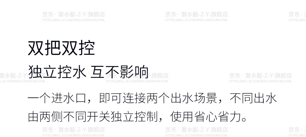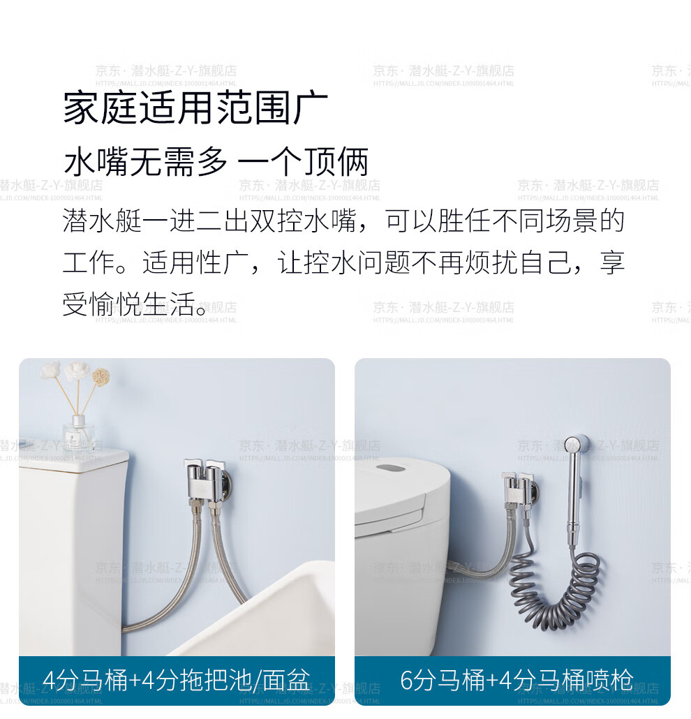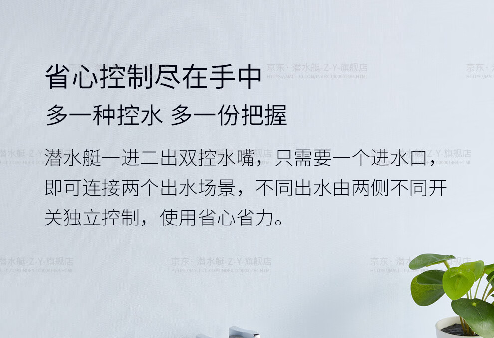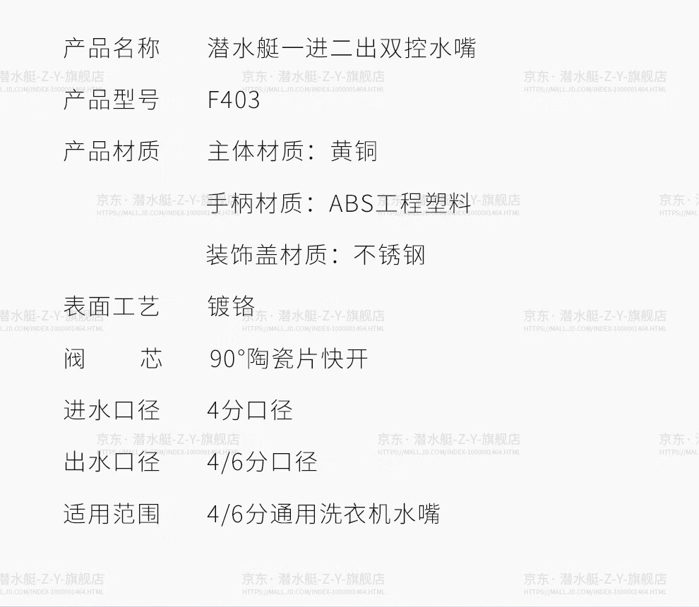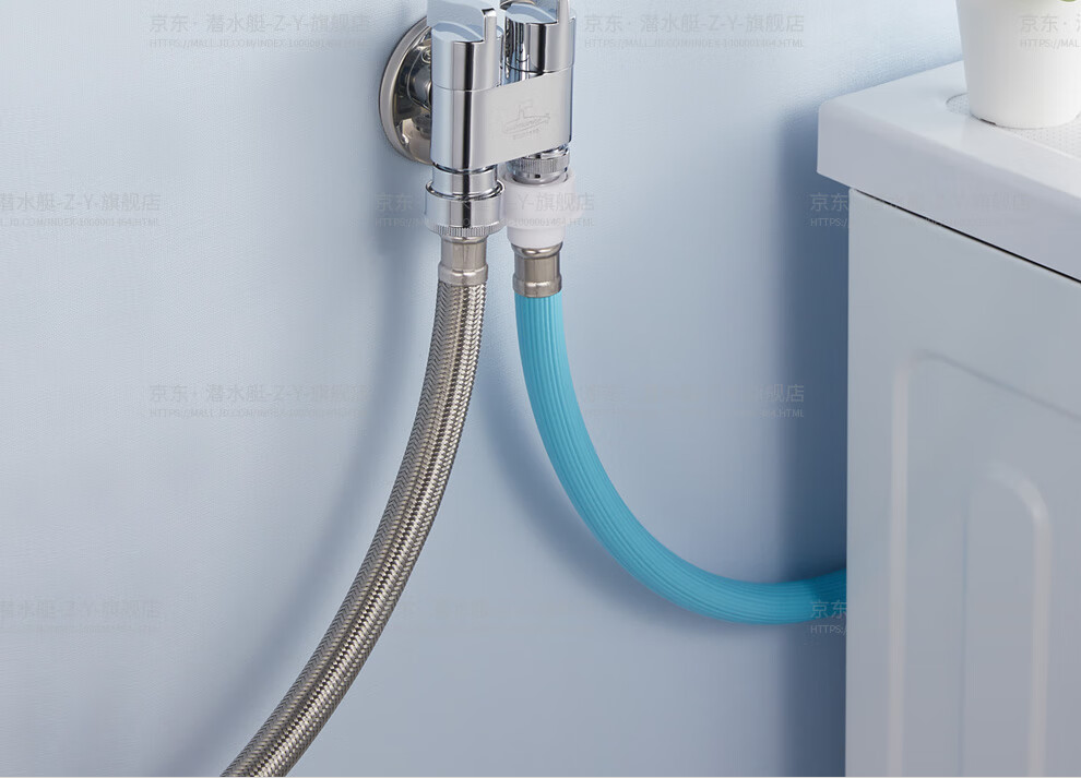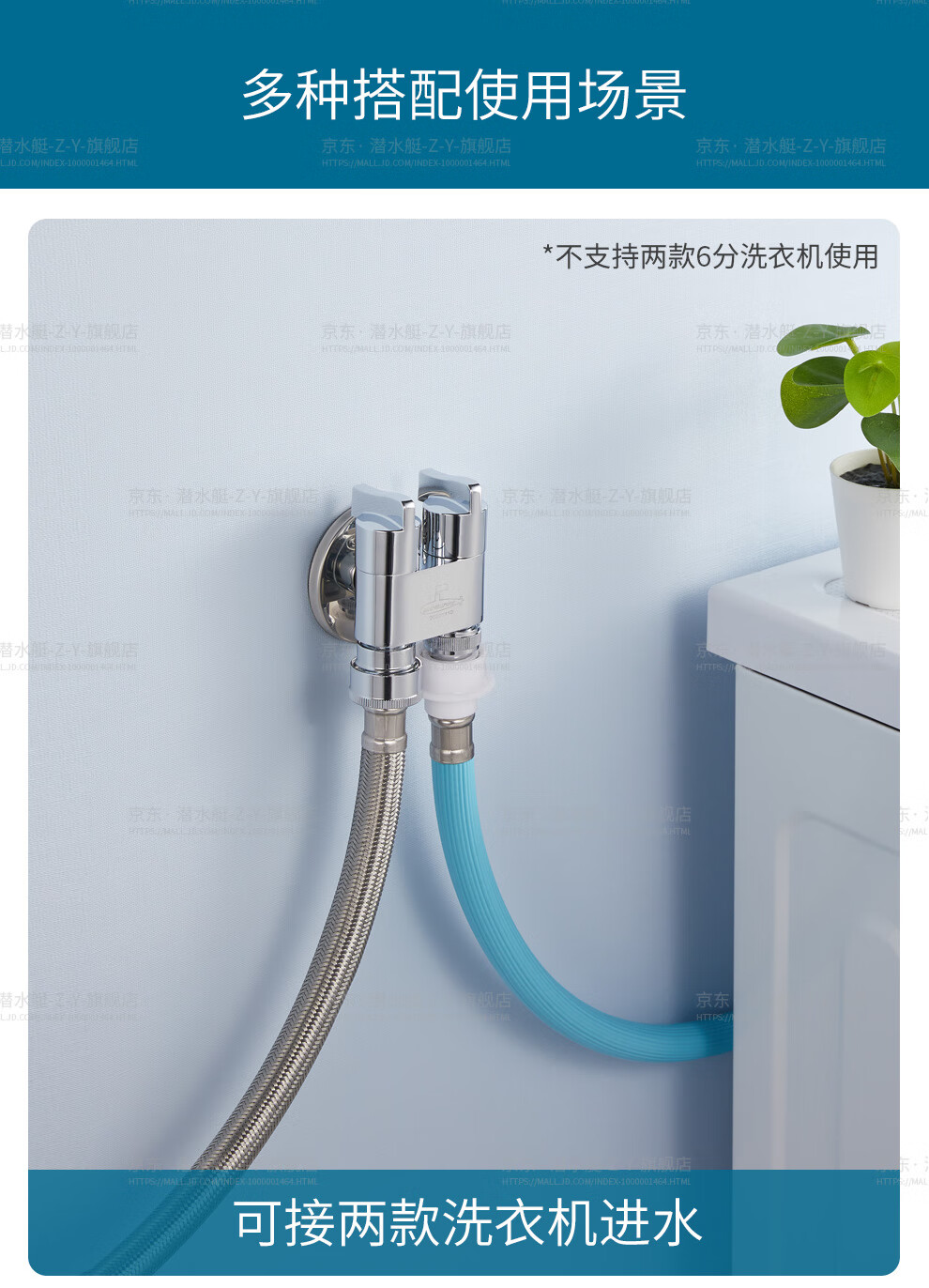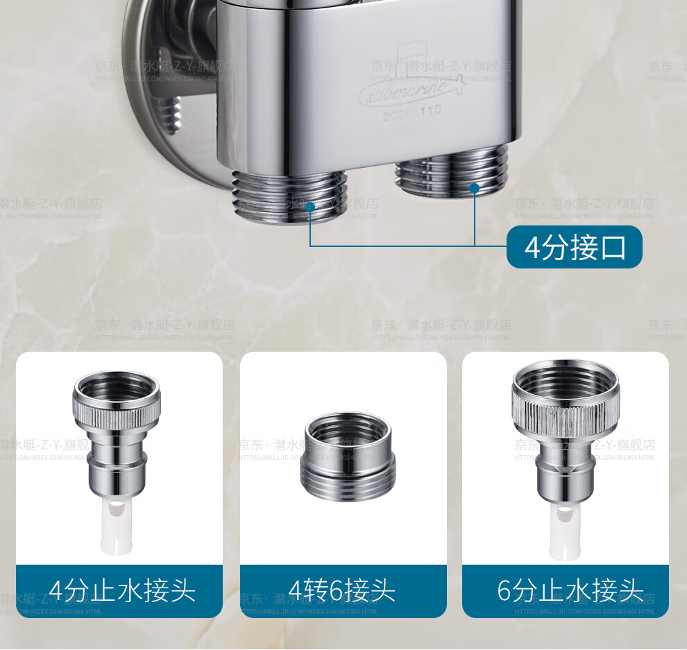 Submarine F403 one-in, two-out, three-way angle valve, brass, chrome-plated, double handle, double control, separate water outlet, built-in water stop device, silver, special supply