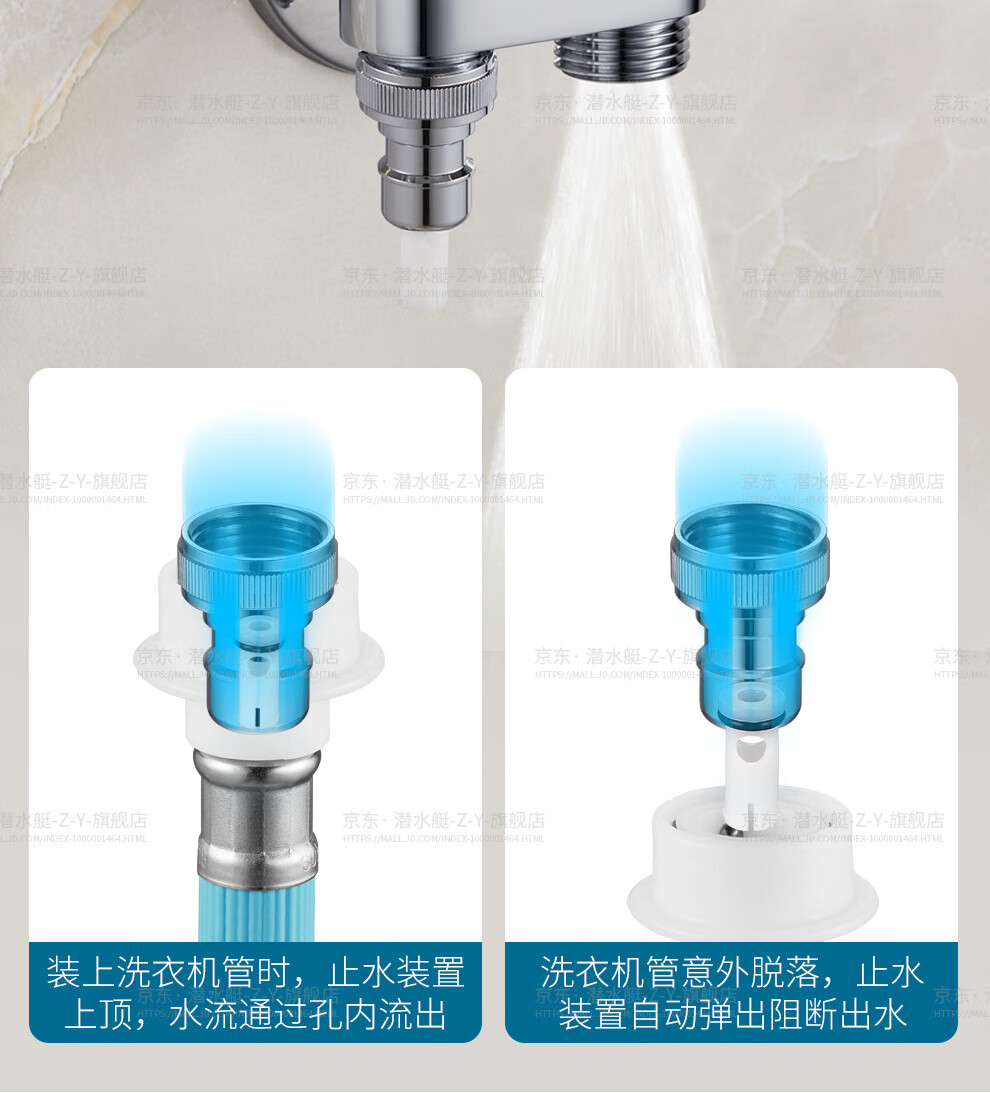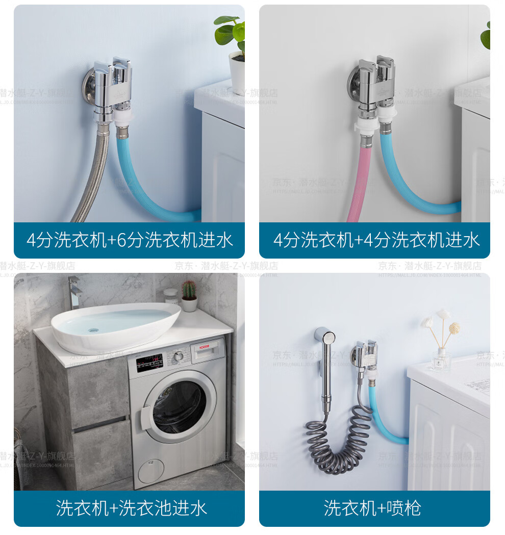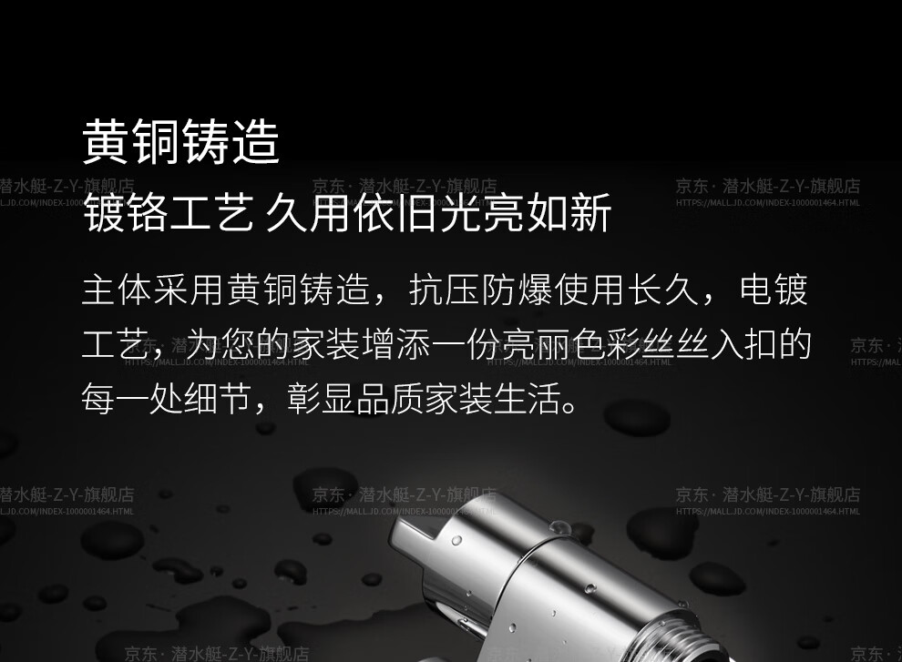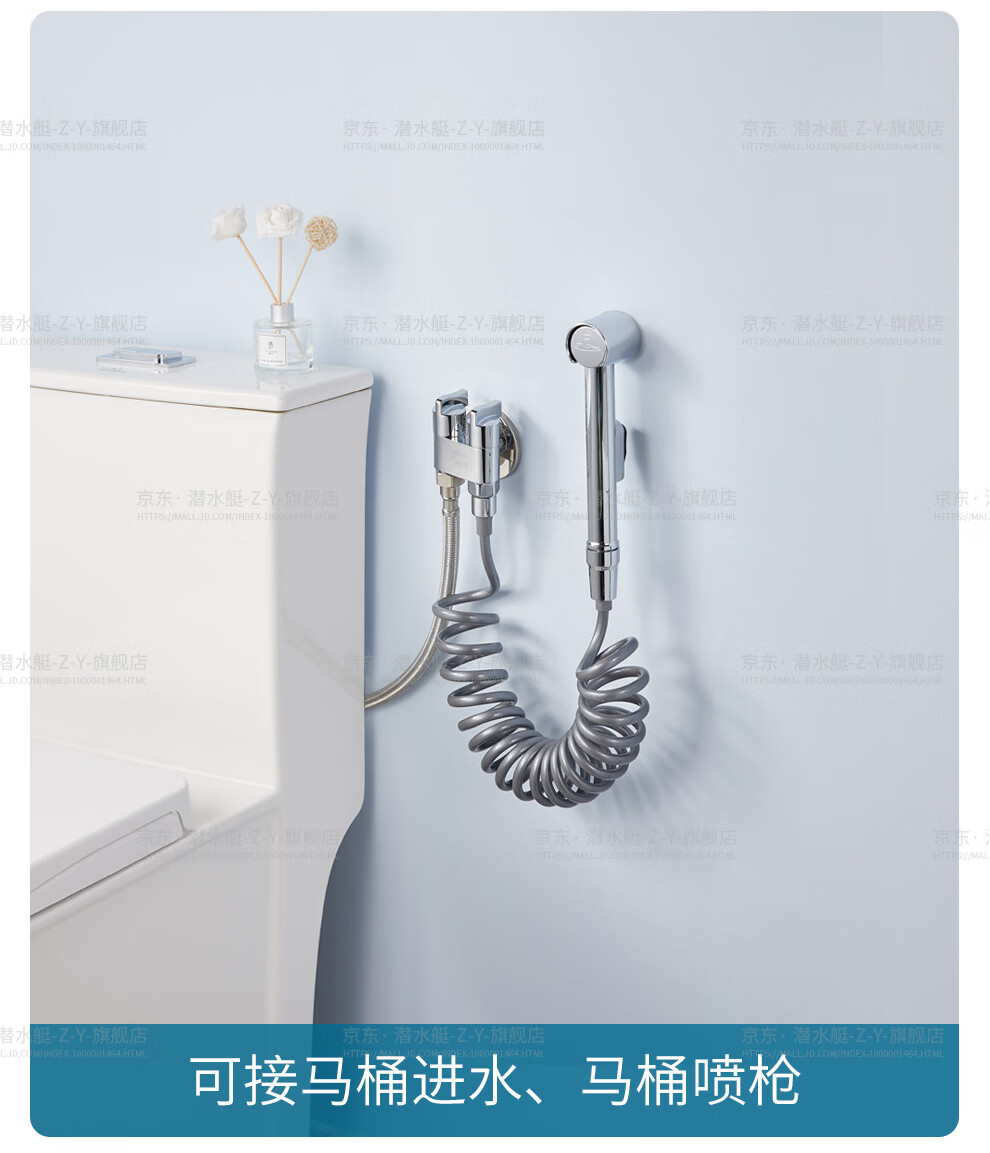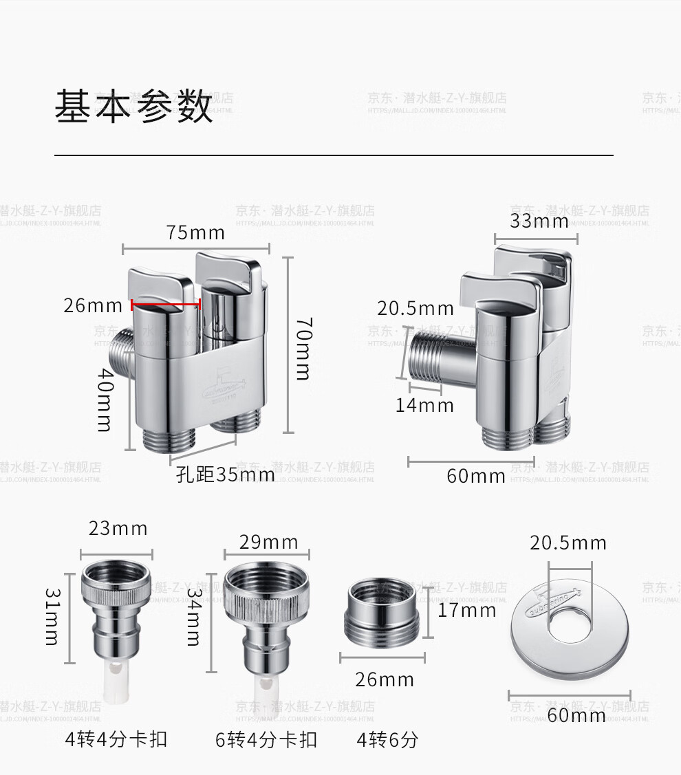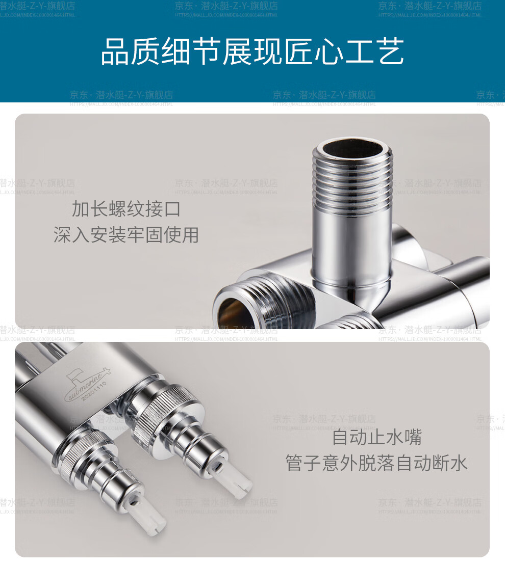 Submarine F403 one-in, two-out, three-way angle valve, brass, chrome-plated, double handle, double control, separate water outlet, built-in water stop device, silver, special supply