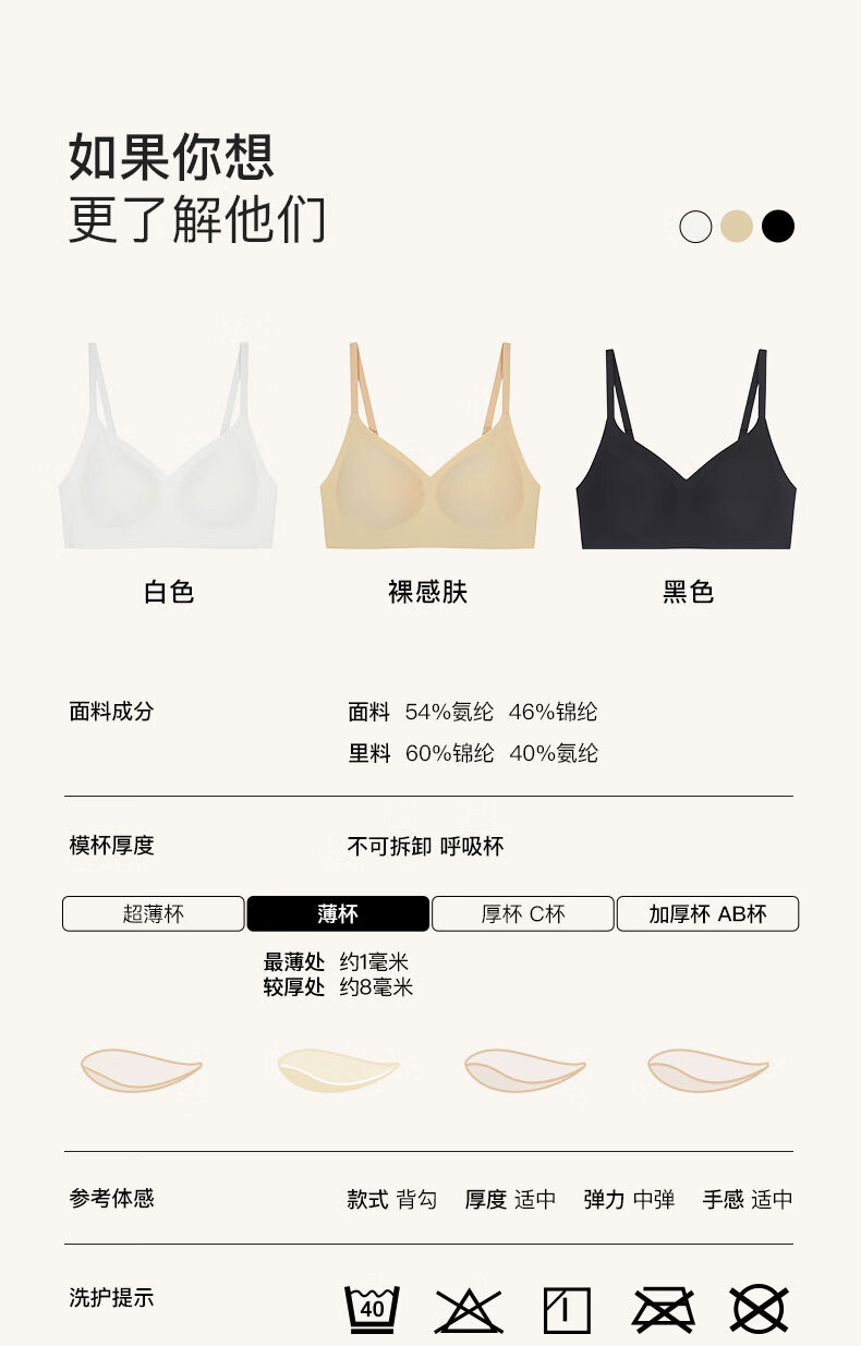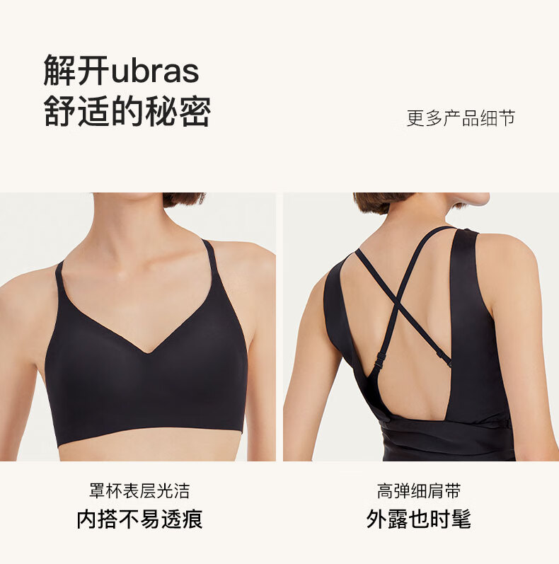 Ubras Swan Neck Slim Backless Bra Women's Underwear Women's Seamless Wireless Bra Black M