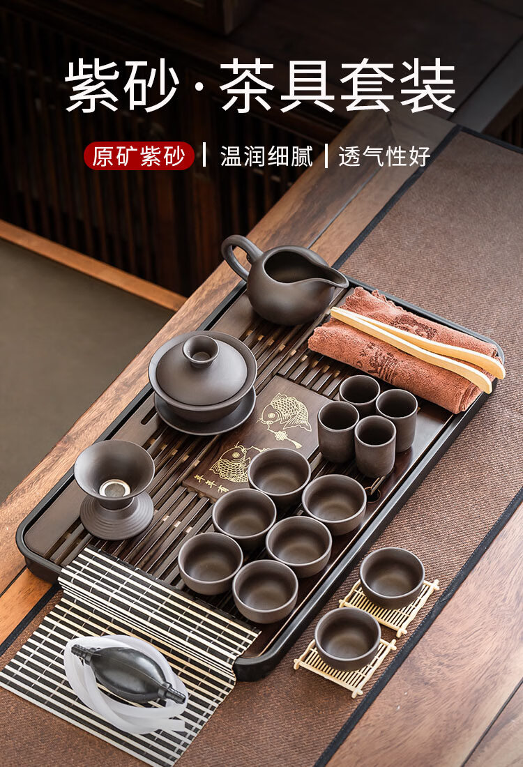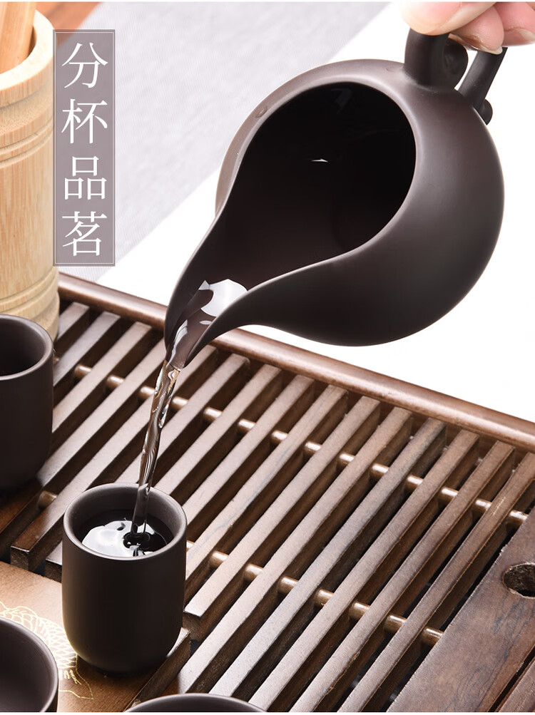 Haofeng 2025 New Purple Clay Kung Fu Tea Set Household Tea Maker Tea Cup Solid Wood Tea Tray as a Souvenir