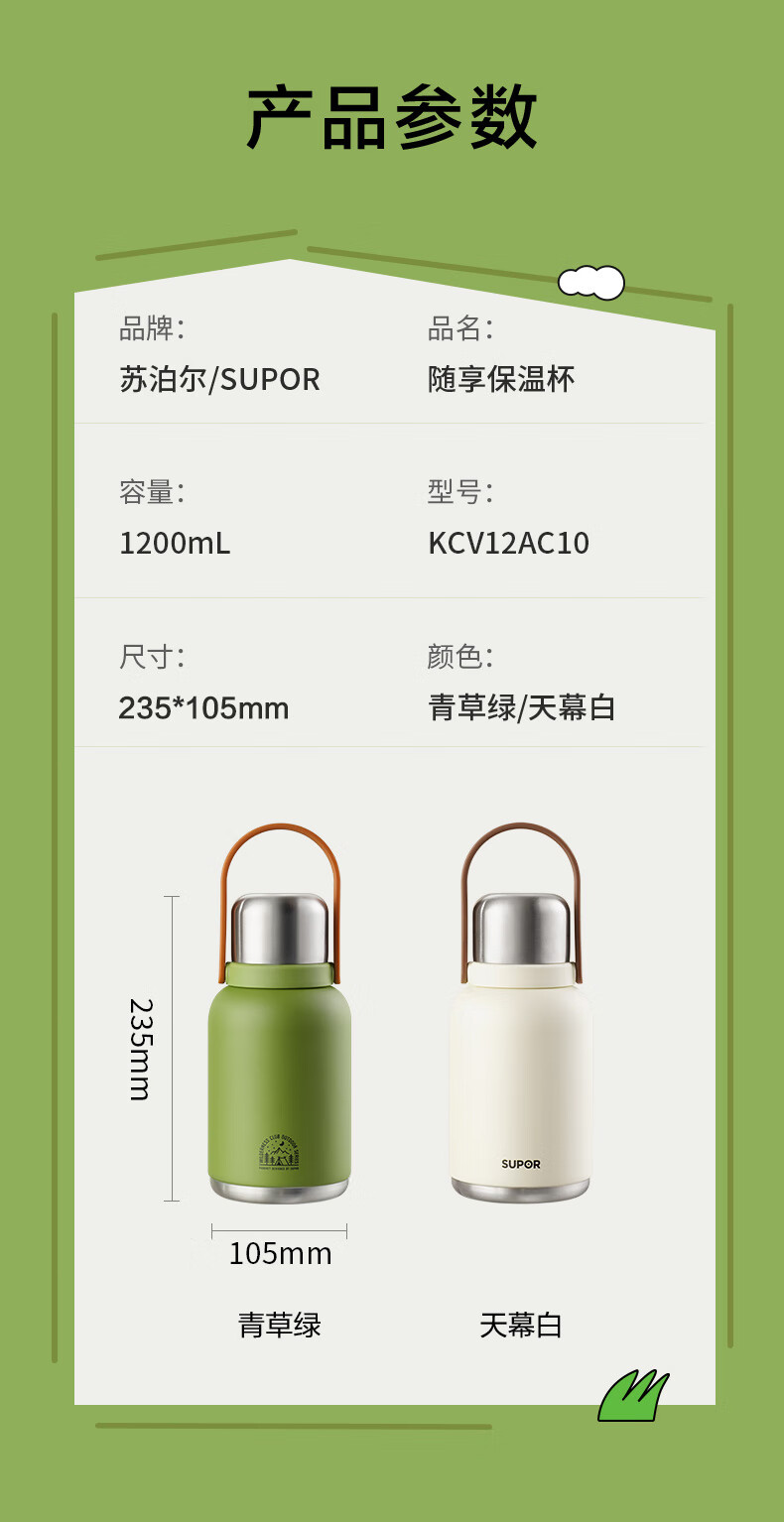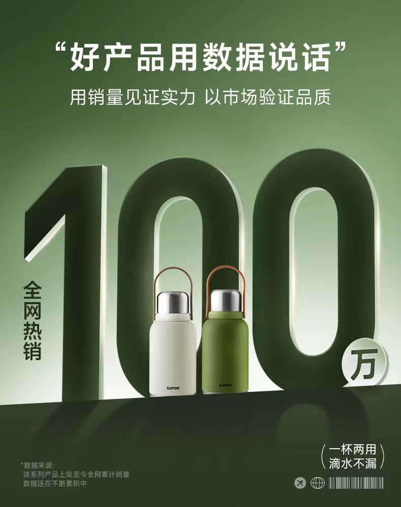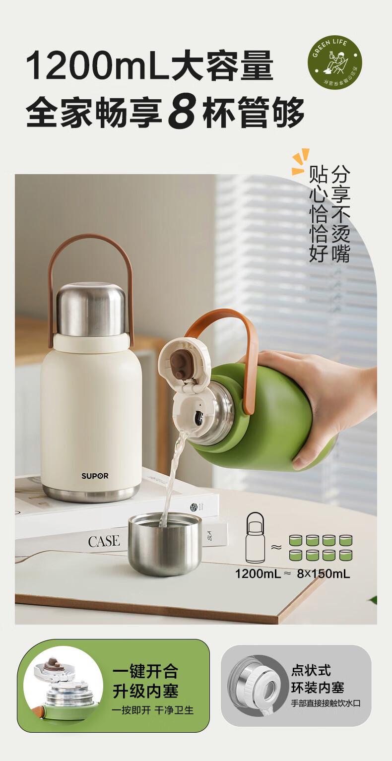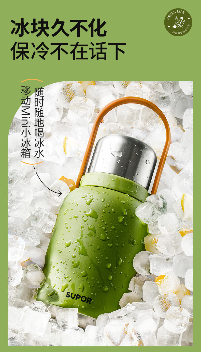 SUPOR thermos cup, large-capacity portable double-drink pot belly cup, picnic portable high-looking water cup