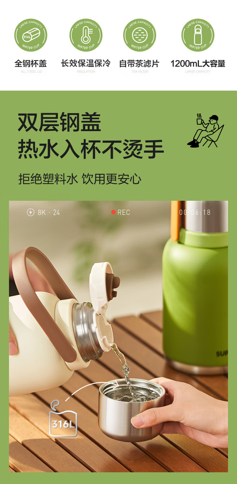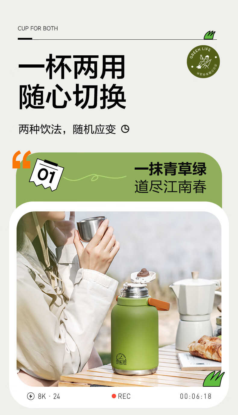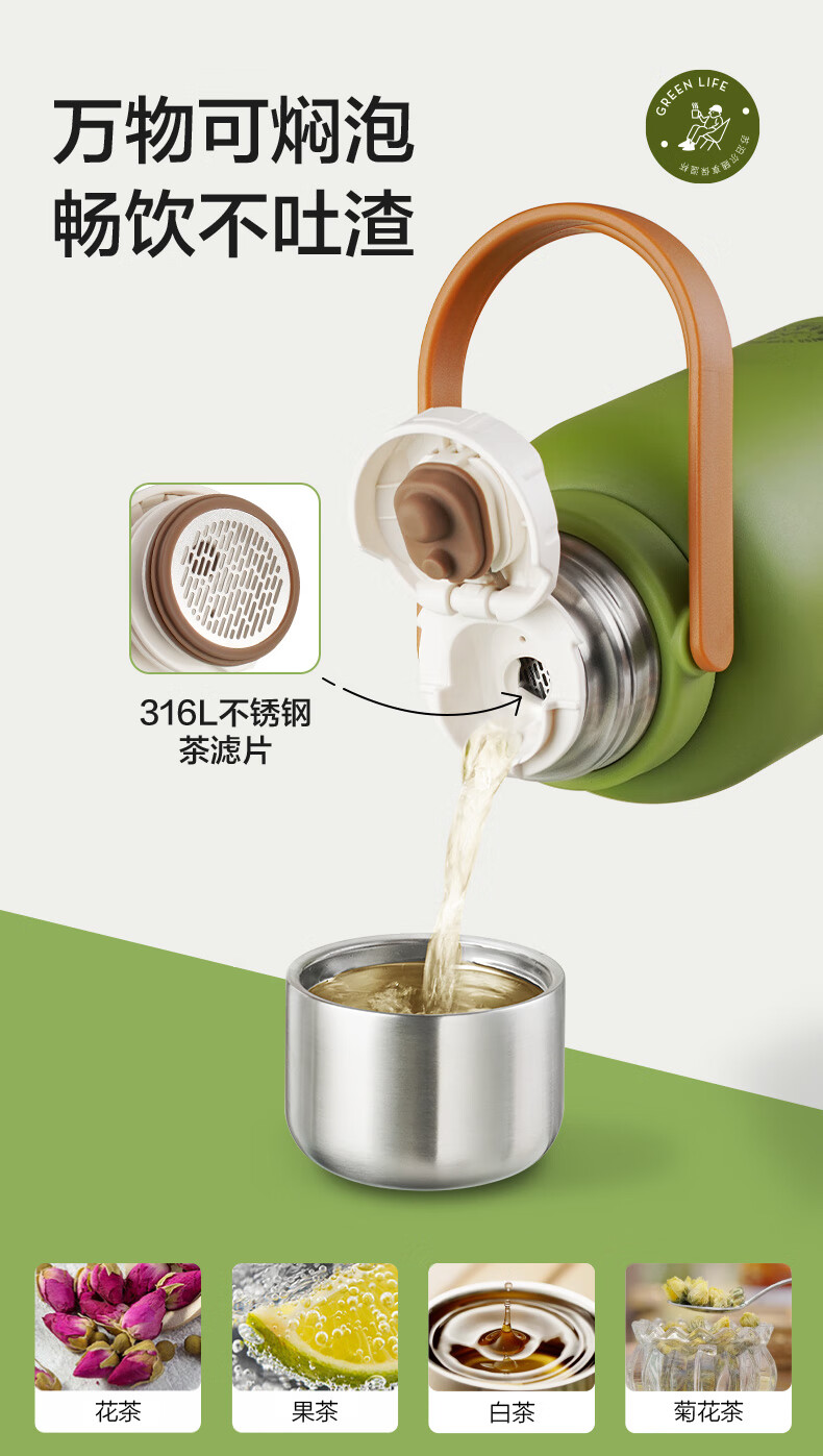 SUPOR thermos cup, large-capacity portable double-drink pot belly cup, picnic portable high-looking water cup