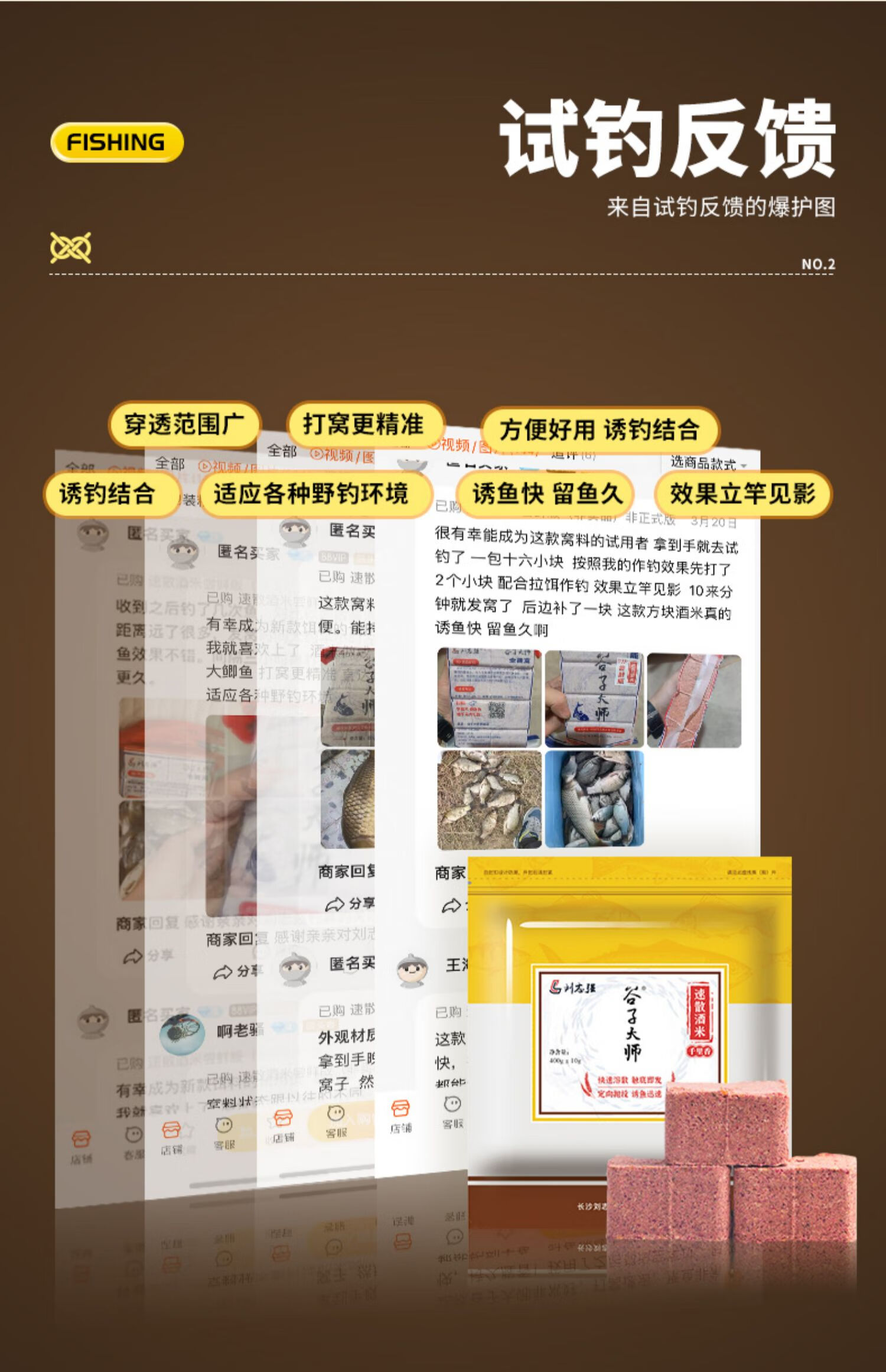 Liu Zhiqiang Millet Master's nest material for wild fishing and making nests, quick-dispersing wine rice cube bait, instant wild fishing for crucian carp and nesting rice 400g