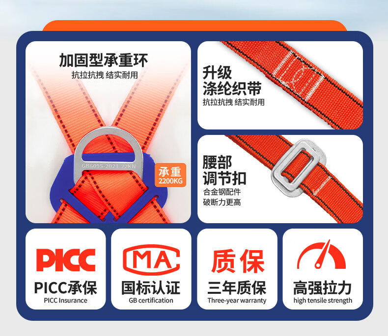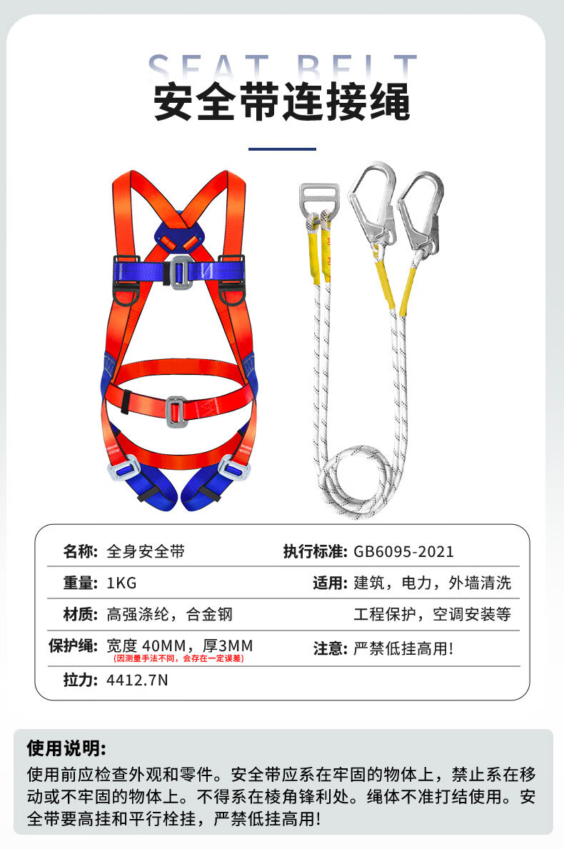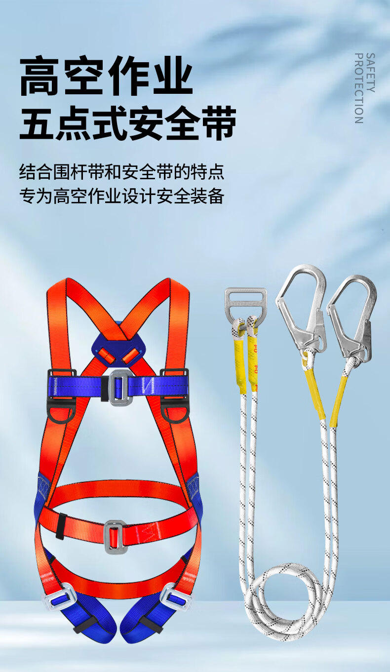 Hongsheng Huashun five-point safety belt 2 meters double rope O-buckle small hook whole body high-altitude work rope construction anti-fall