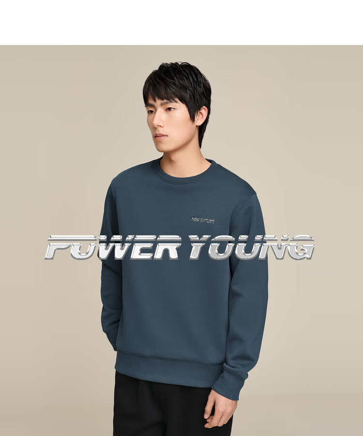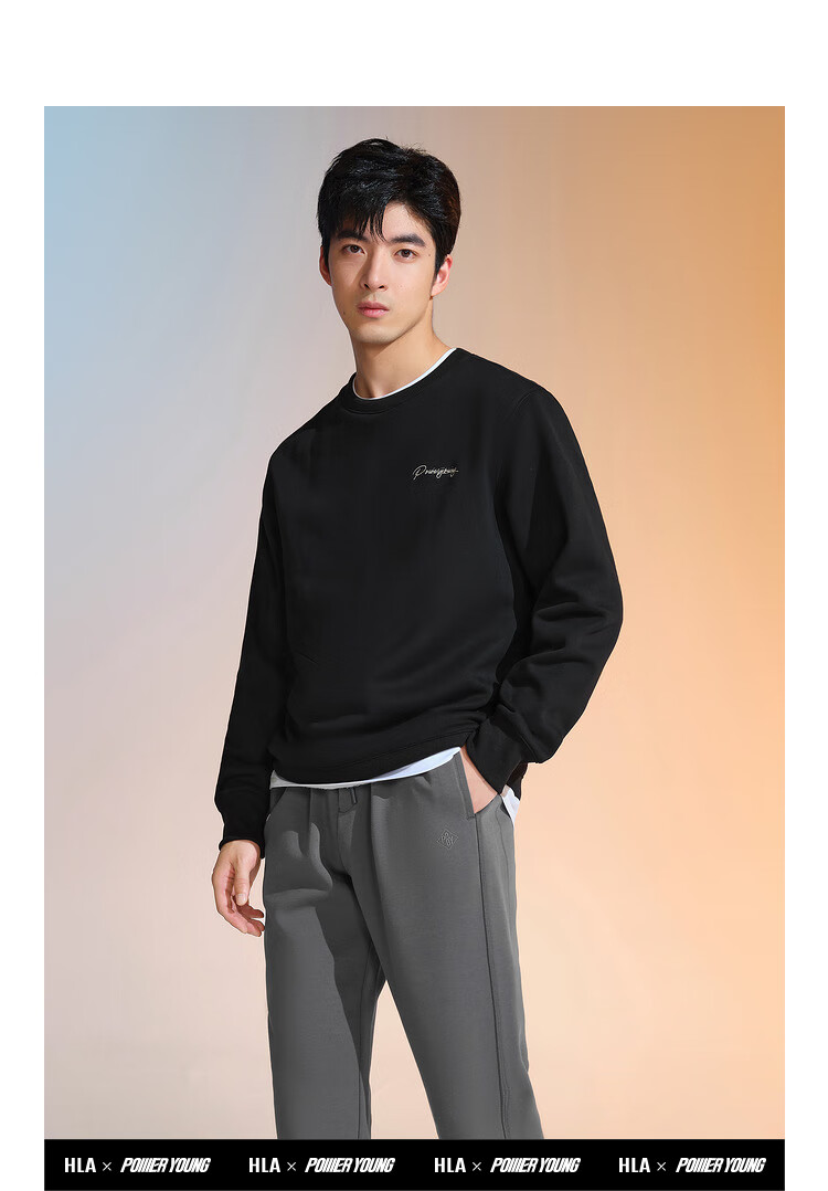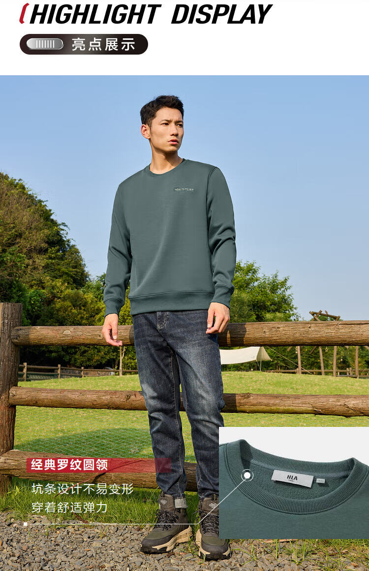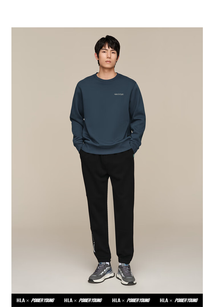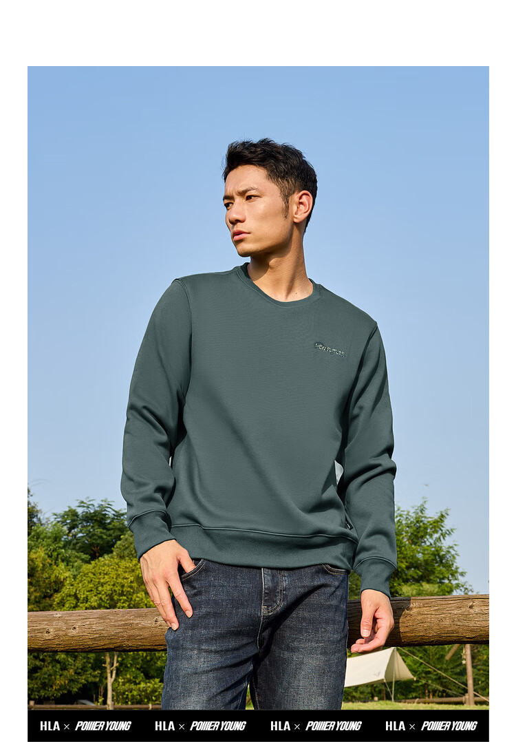 HLA Hai Lan Home brand exclusively supplies sweatshirts for men in winter POWER YOUNG series plus velvet and thickened long sleeves for men