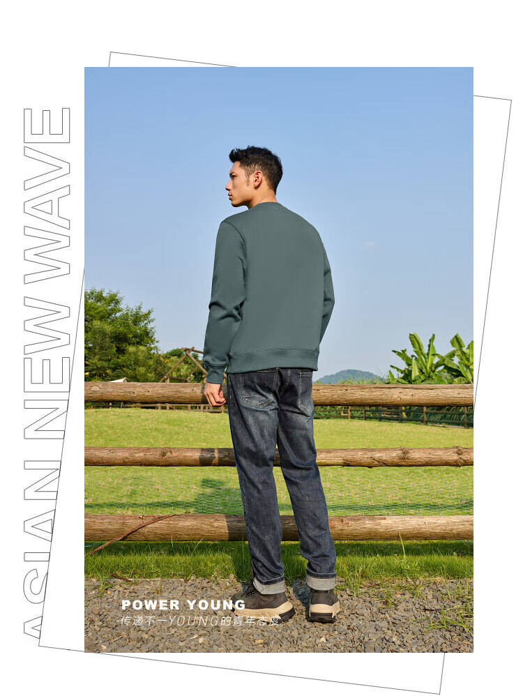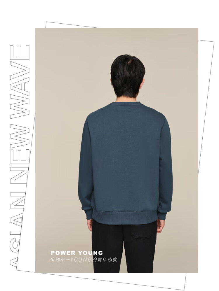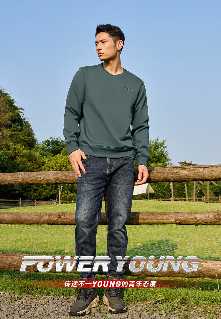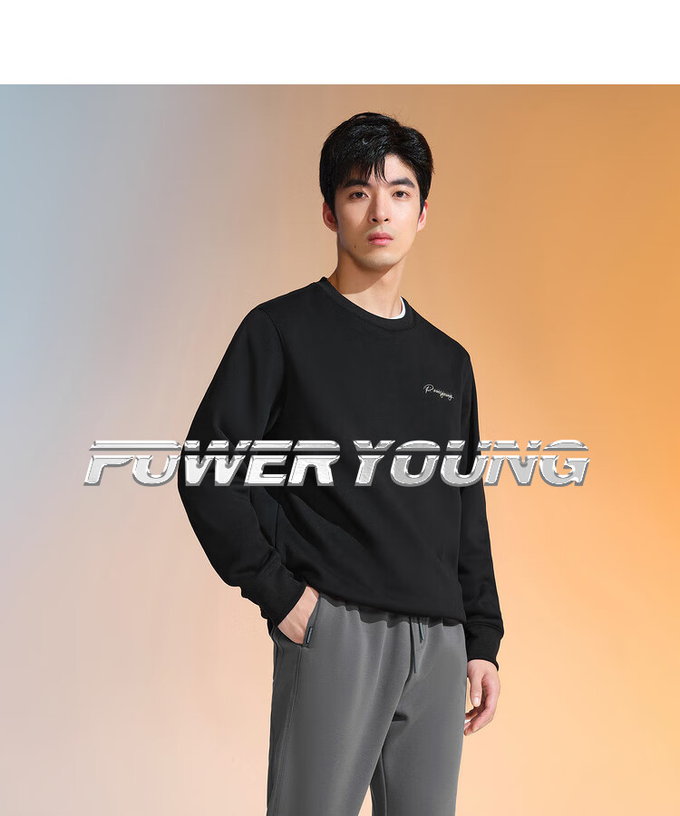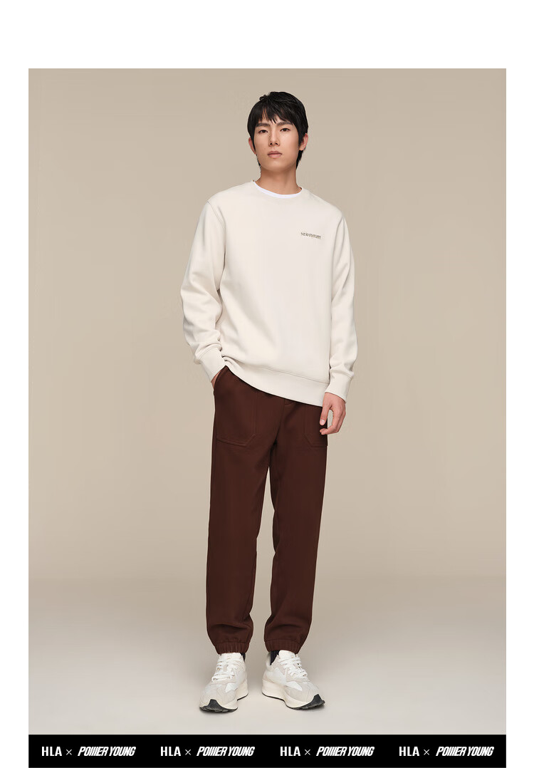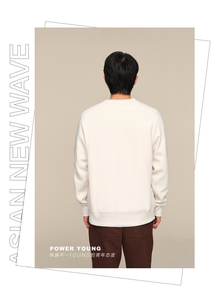 HLA Hai Lan Home brand exclusively supplies sweatshirts for men in winter POWER YOUNG series plus velvet and thickened long sleeves for men
