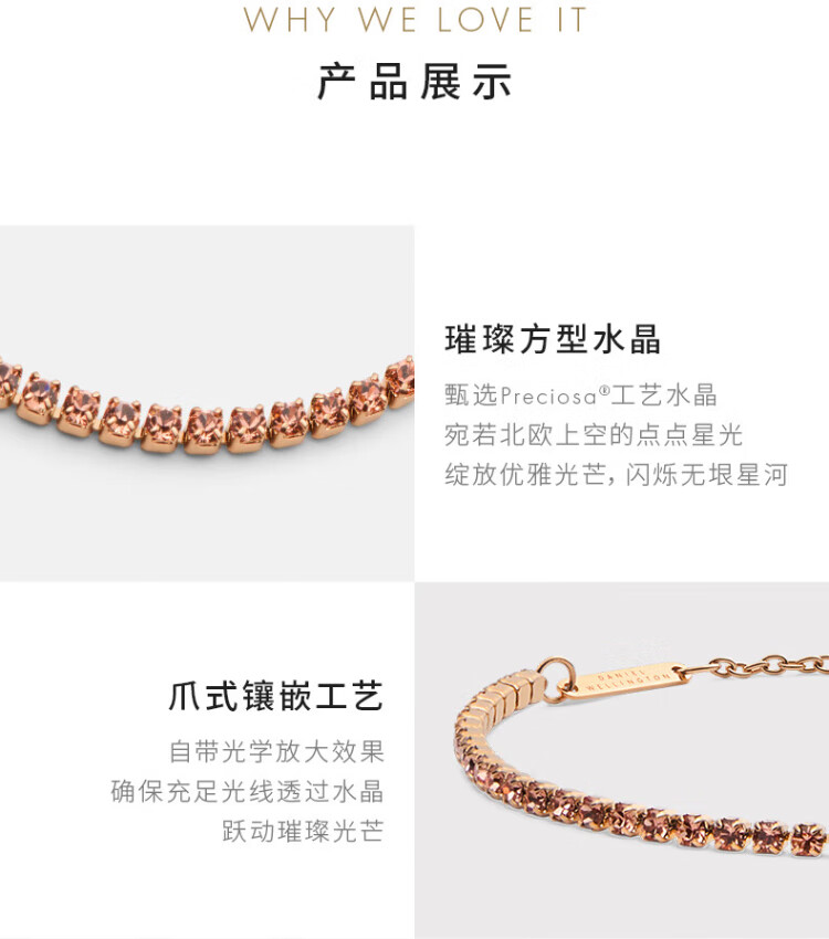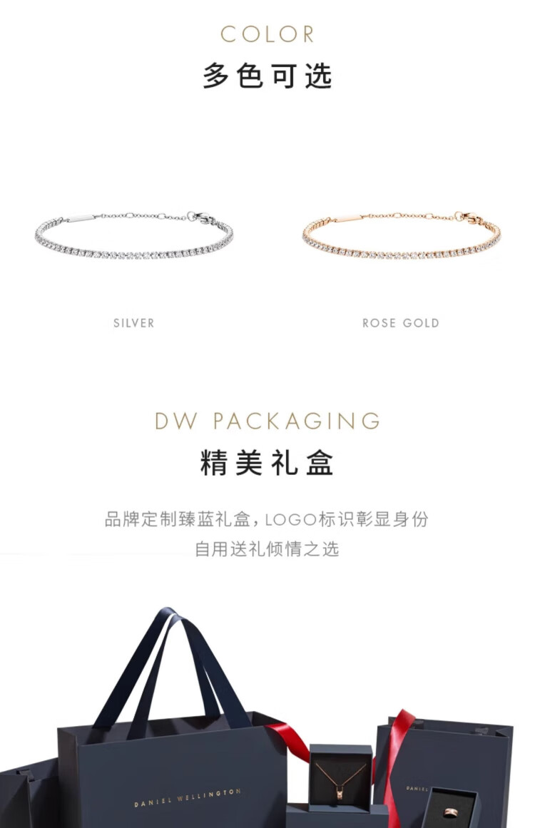 Daniel Wellington dw bracelet for women, starlight tennis bracelet, rose gold, fashionable and luxurious, birthday gift for girlfriend DW387