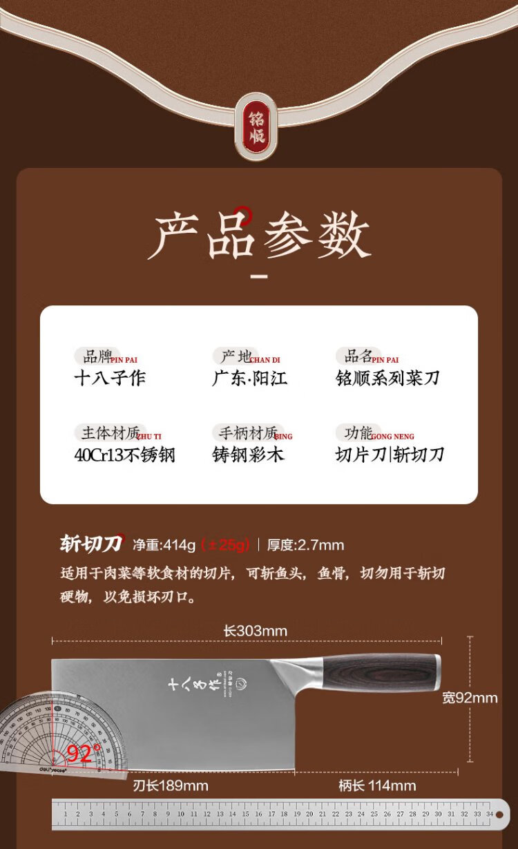 十八子作铭顺系列刀具家用菜刀斩切刀 SL2353-AB