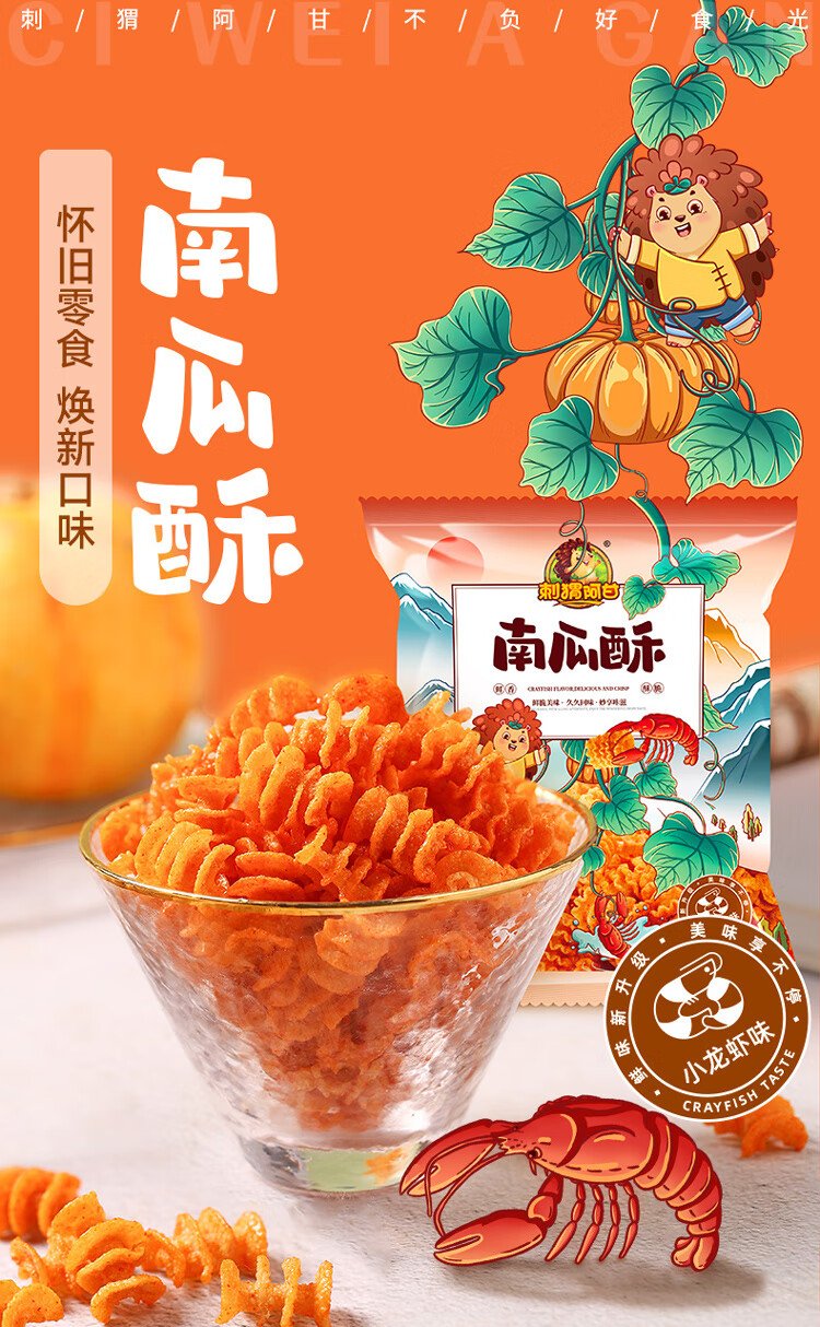 Hedgehog Forrest Gump Pumpkin Crispy Crayfish Flavor Casual Puffed Snacks Office Afternoon Tea Drama Craving Snacks 13g*30 Bags